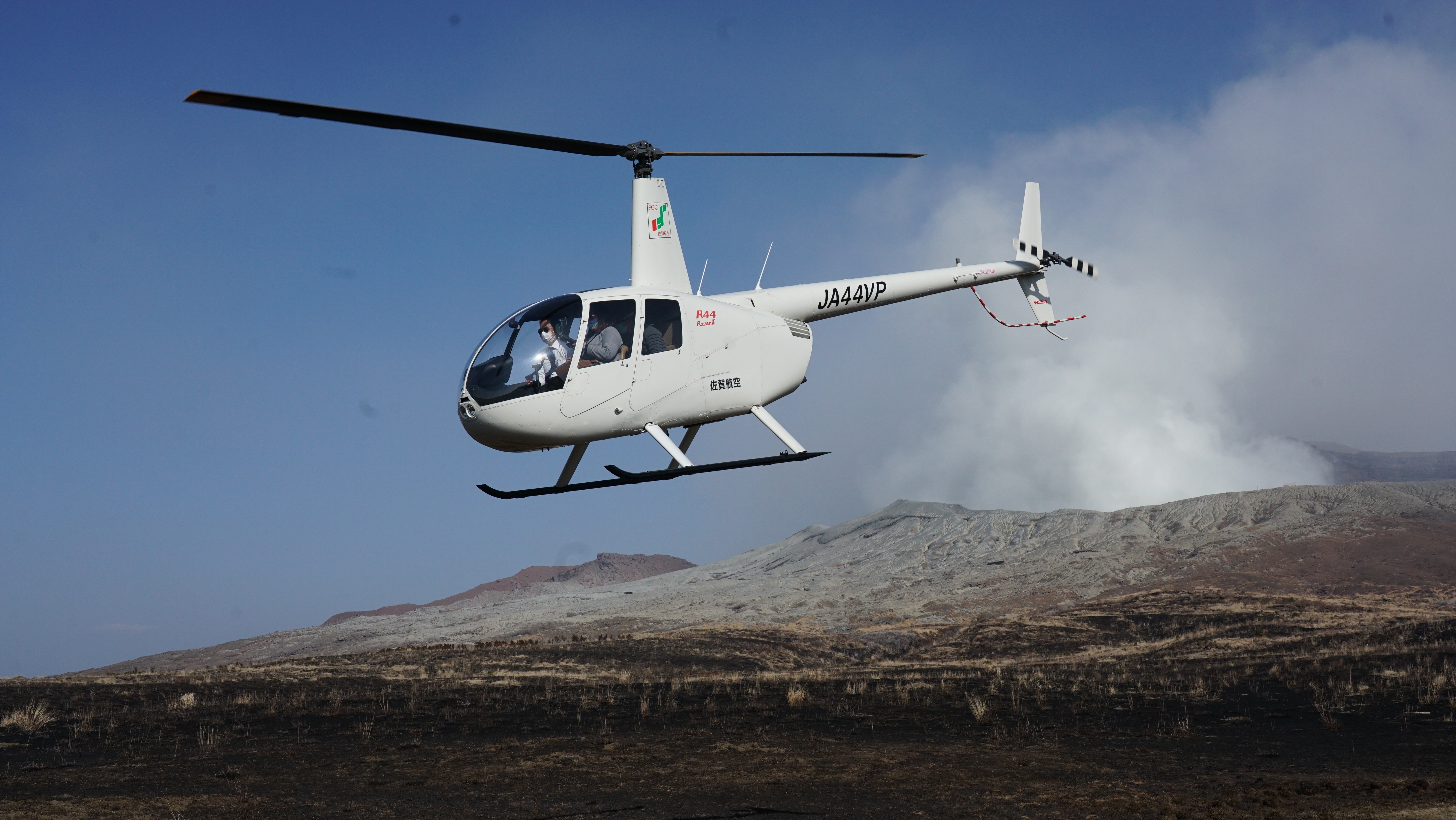 ▲搭乘直升機飛越阿蘇火山口