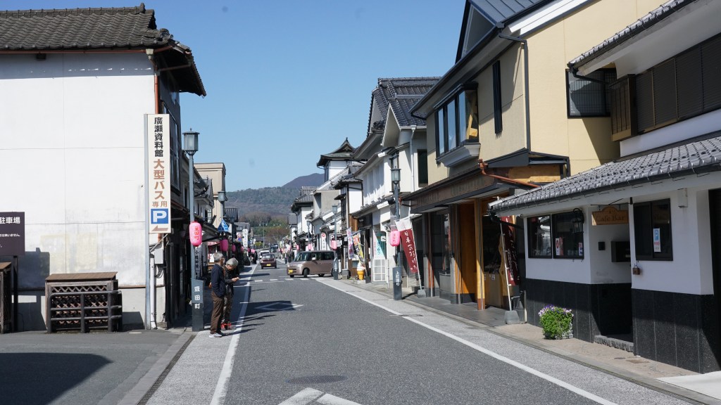 懷舊街還保留著日本幕府時期江戶的建築,被譽稱為「小京都」。木造的街屋整齊乾淨,管線早已地下化,隨意走看不經意來到醬油味噌名店,以及廣瀨家屋。廣瀨家的祖先是武田信玄的家臣,一直到現在家道興旺。老家的資料館,保留了許多相關文物,只能從屋外瀏覽氣勢不凡的建築。