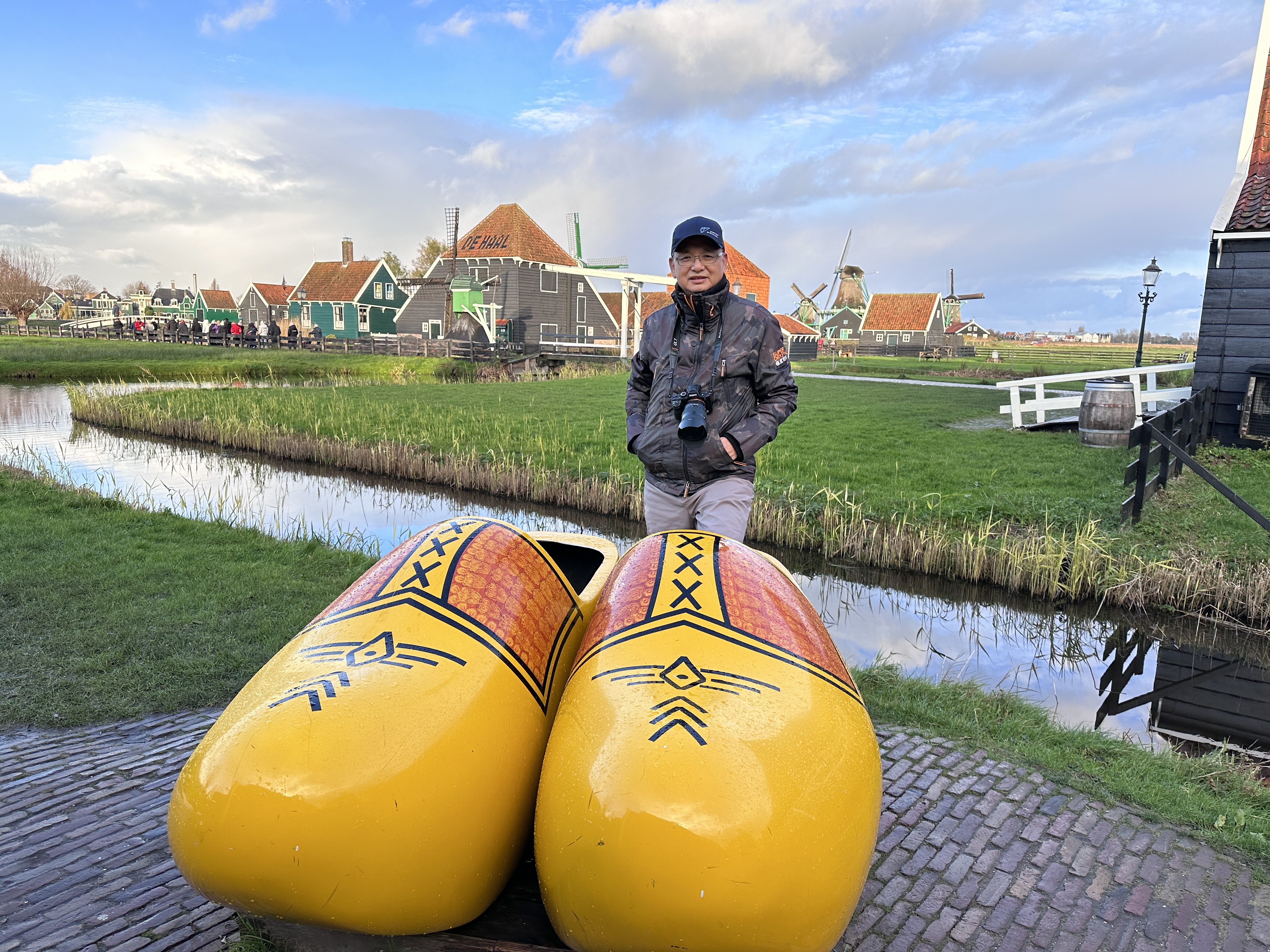 從阿姆斯特丹前往風車村路程不遠,這天的天氣晴朗,風車村格外像童話式鄉間,一具具風車似迎賓站列姿態向觀光客招手,農舍、風車、體驗工場….,整村形成一個生活博物館,當然招手的用意免俗不了購物,依次到木屐工廠參觀,師傅實做白楊木挖空製成的木靴的製程,以及展示區五顏六色的大小木屐。小而美的木屐易於攜帶,很受遊客喜歡的紀念品。這裡起司工廠在了解製造過程後,還可以試吃不同口味的起司,確實有獨特的風味。