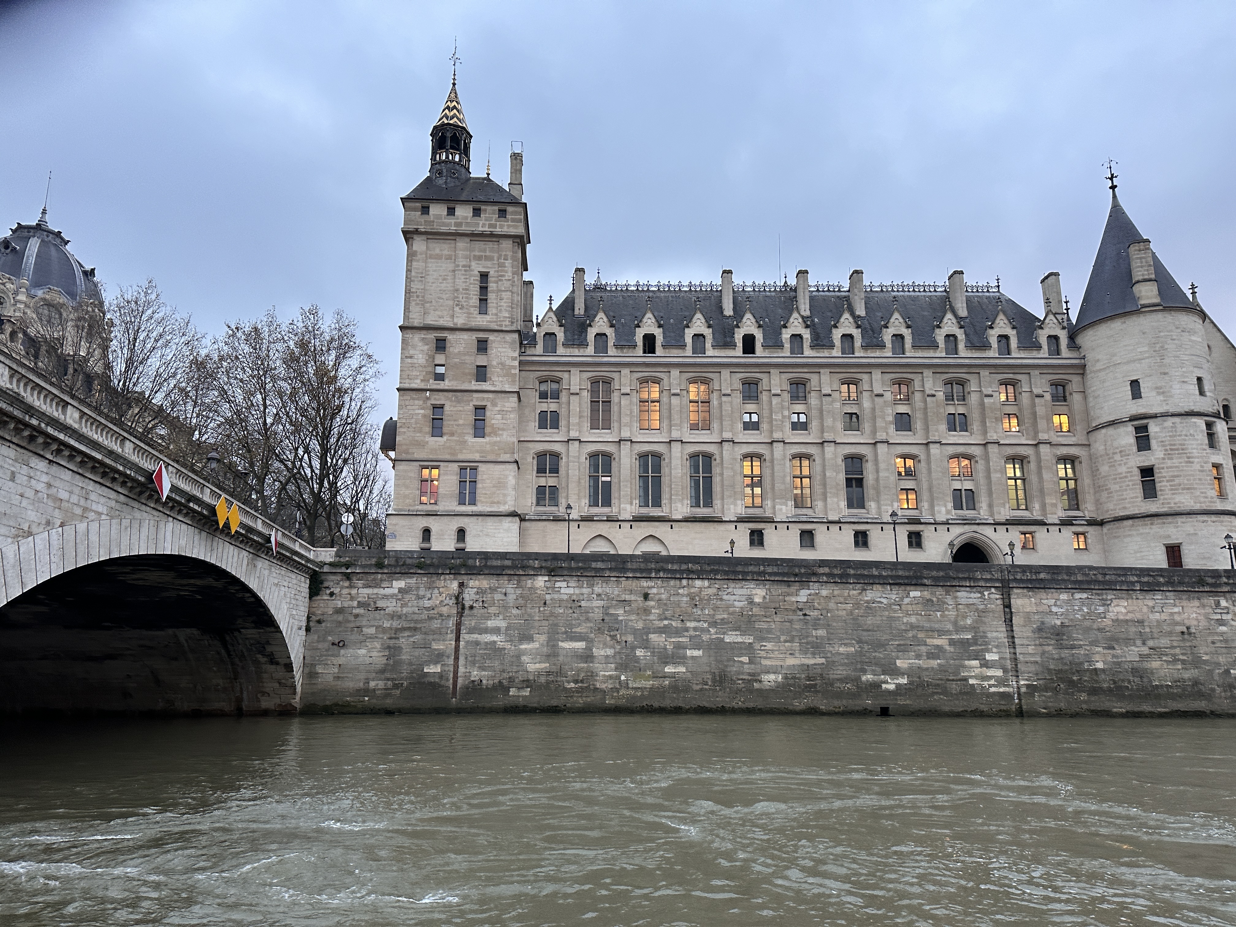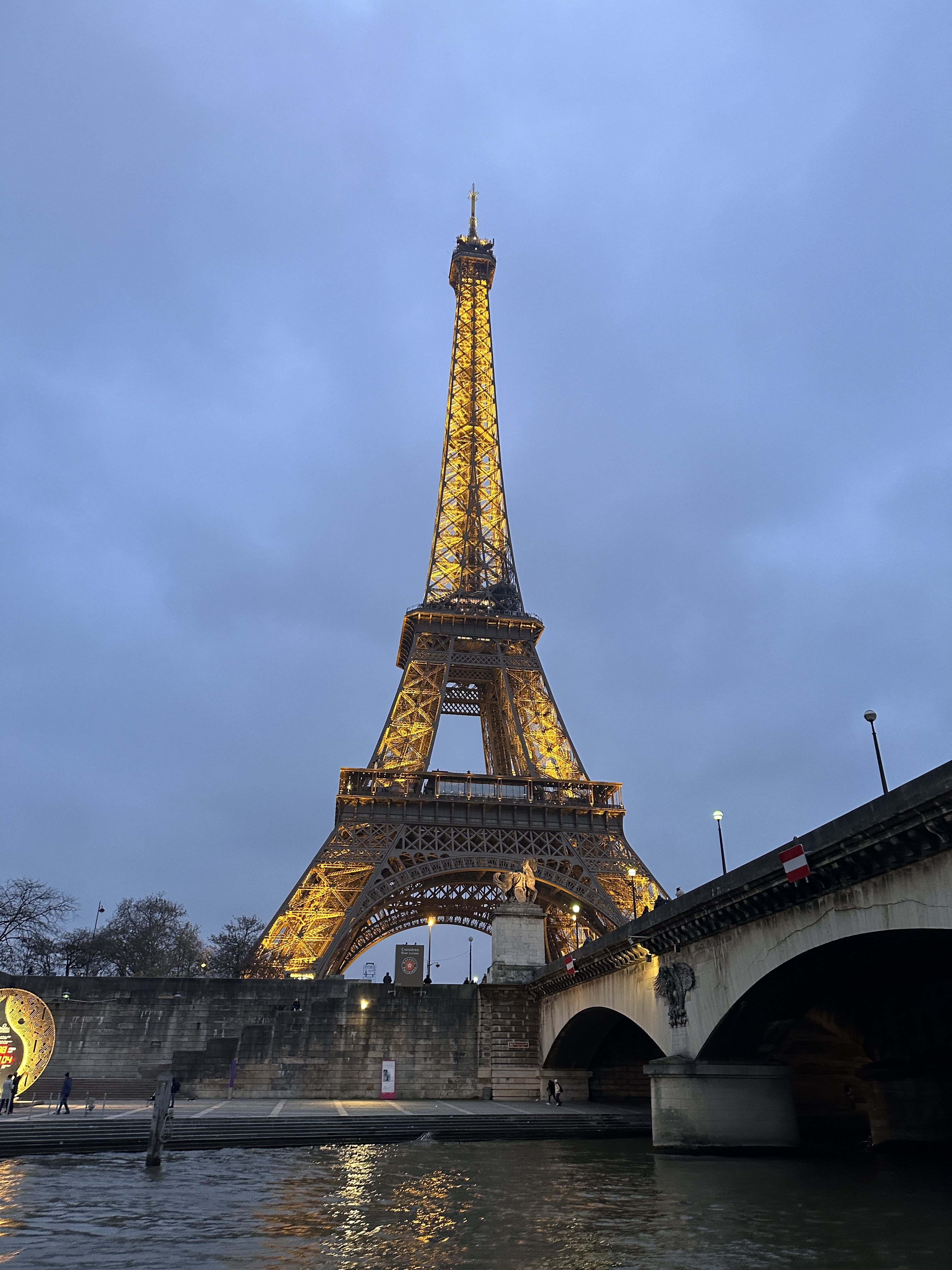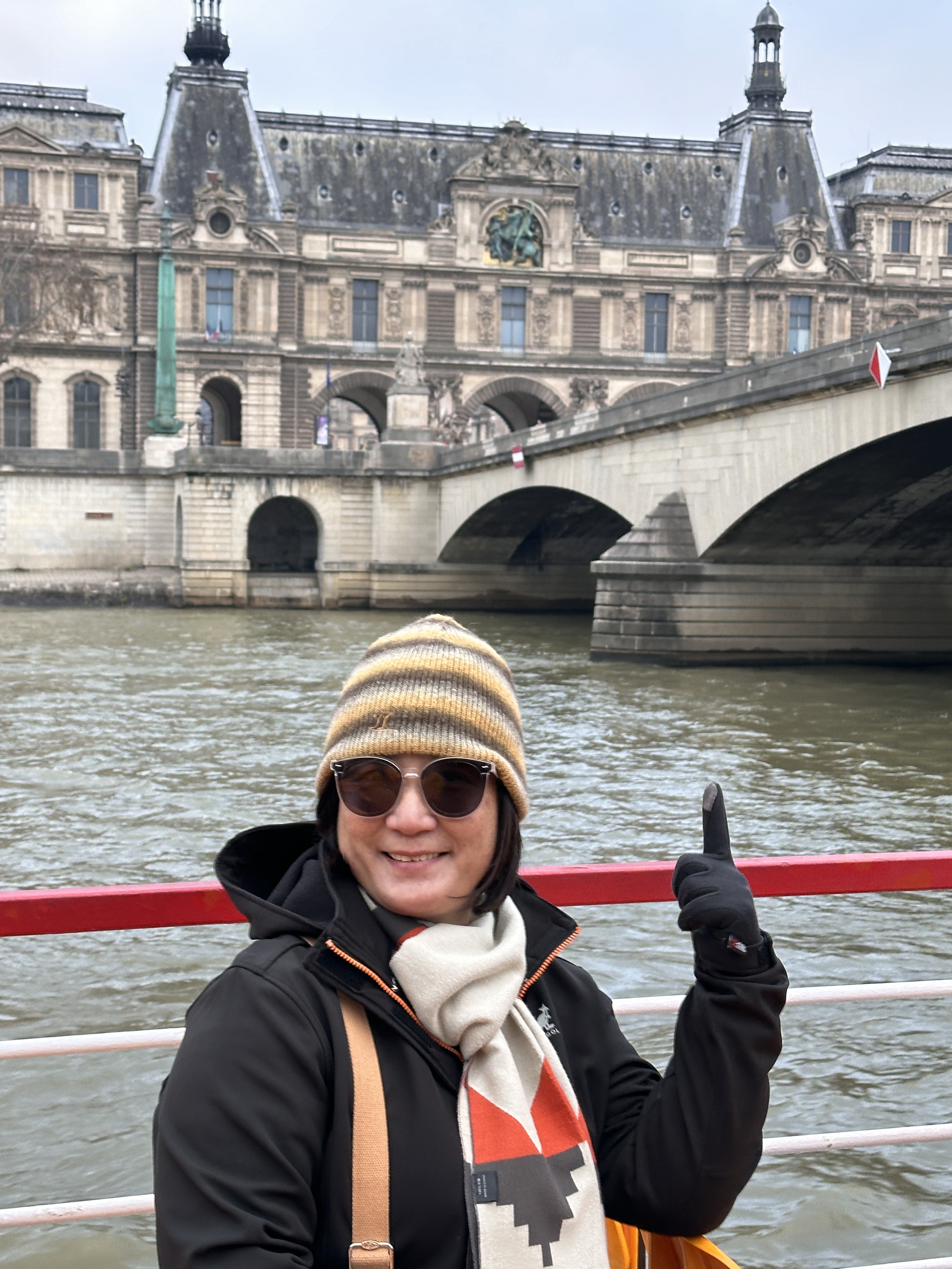 塞納河畔延展著文明的年輪,經典建築隨著時代不斷改建,在艾菲爾鐵塔附近碼頭登船後,錶定兩個小時暢遊塞納河,船上提供14種不同語言的語音導覽,上船後直上船艙的頂層,顧不得室外陰冷,沿左右兩岸一次瀏覽拍照,經過:國民議會、榮軍院、法蘭西學院、亞歷三大世橋(巴黎最美的橋)、大小皇宮、奧賽美術館(巴黎火車站改建)、羅浮宮、杜樂麗花園、聖禮拜堂、巴黎聖母院、市政廳、巴黎古監獄等著名的建築,目不暇給。當經過西堤島河道時一分為二,被各種機具掛滿傷痕的聖母院,觸景有點哀愁;遊船返回碼頭時,艾菲爾鐵塔華燈初上,華麗轉身而風情萬種,一趟遊程交替兩種情緒!