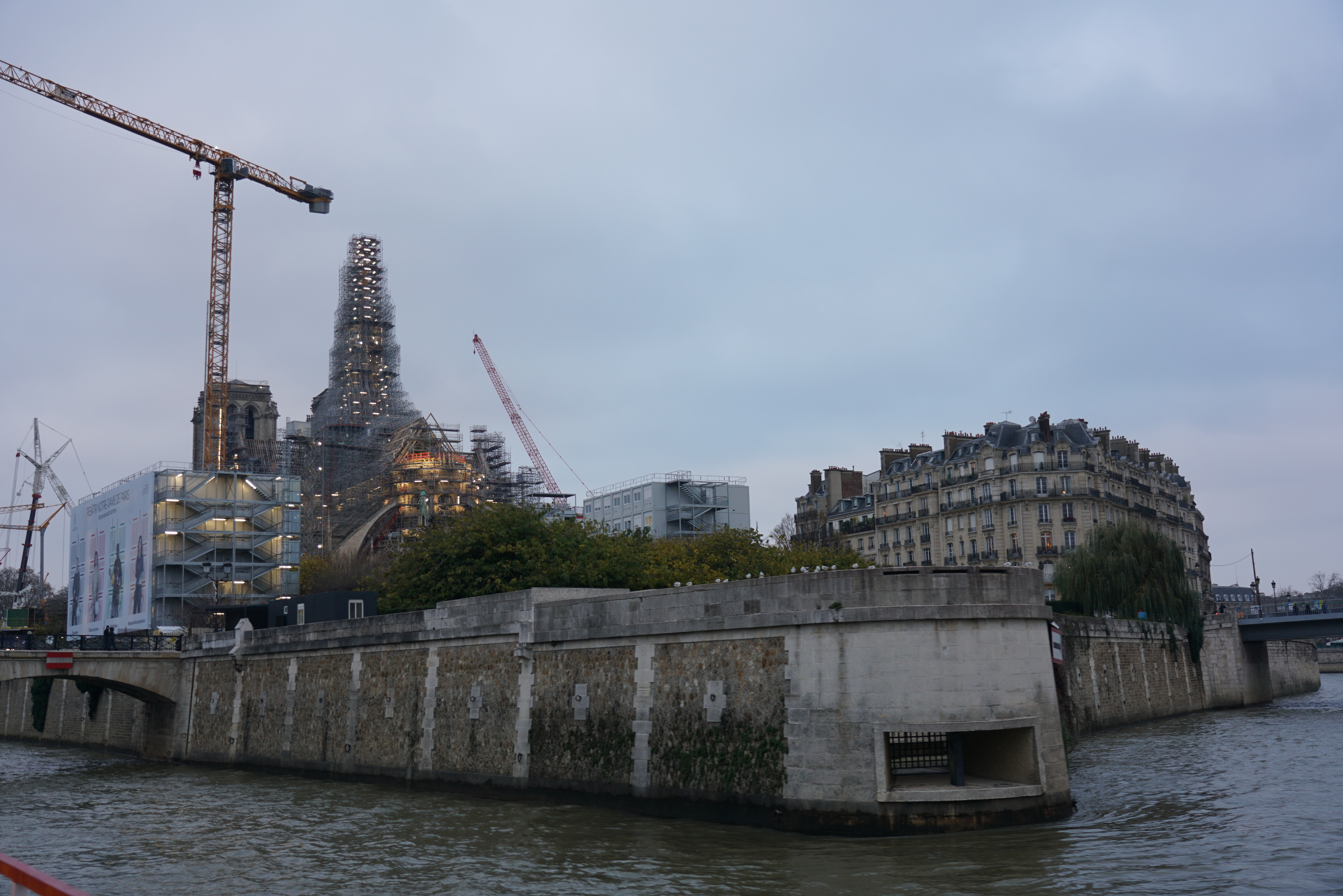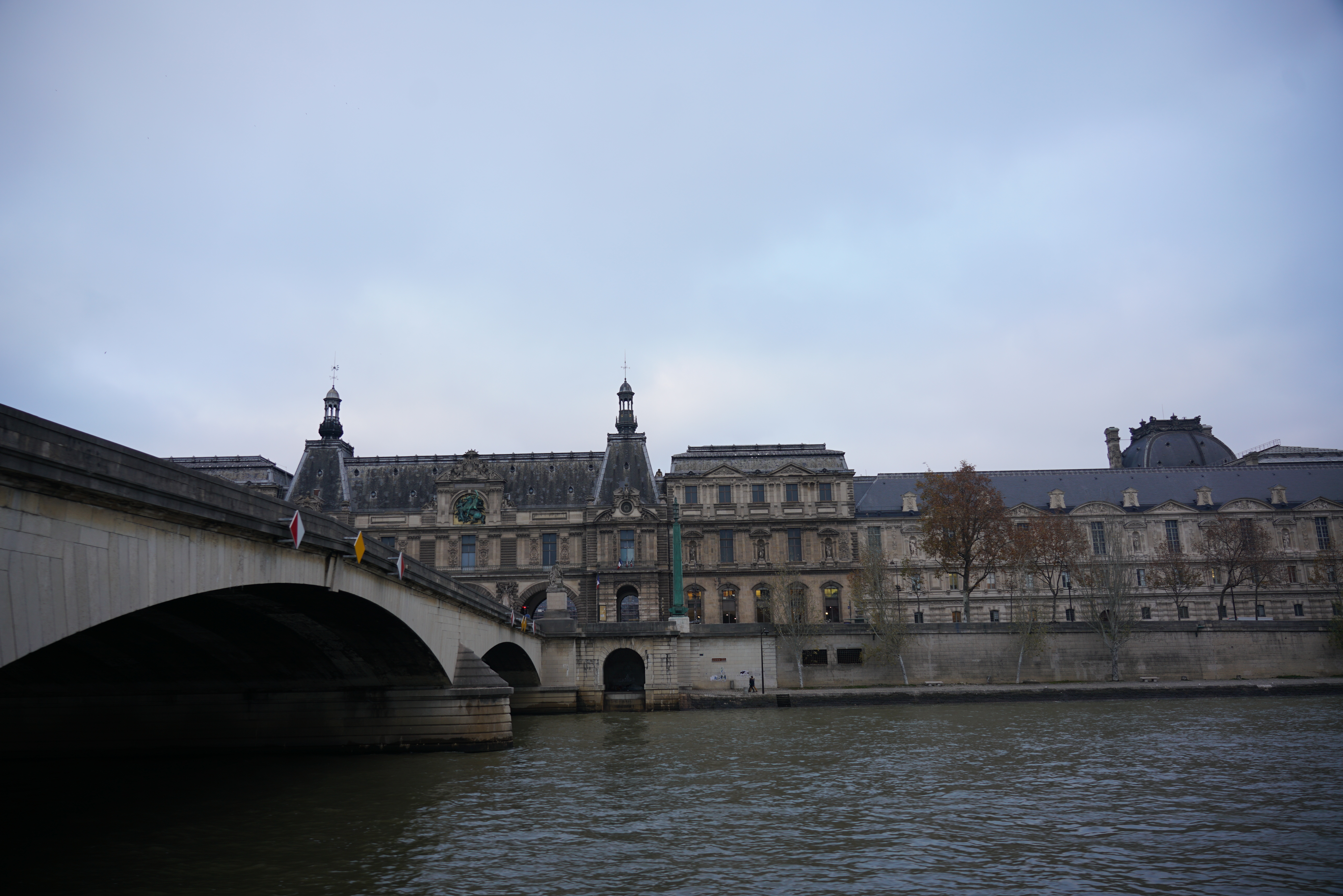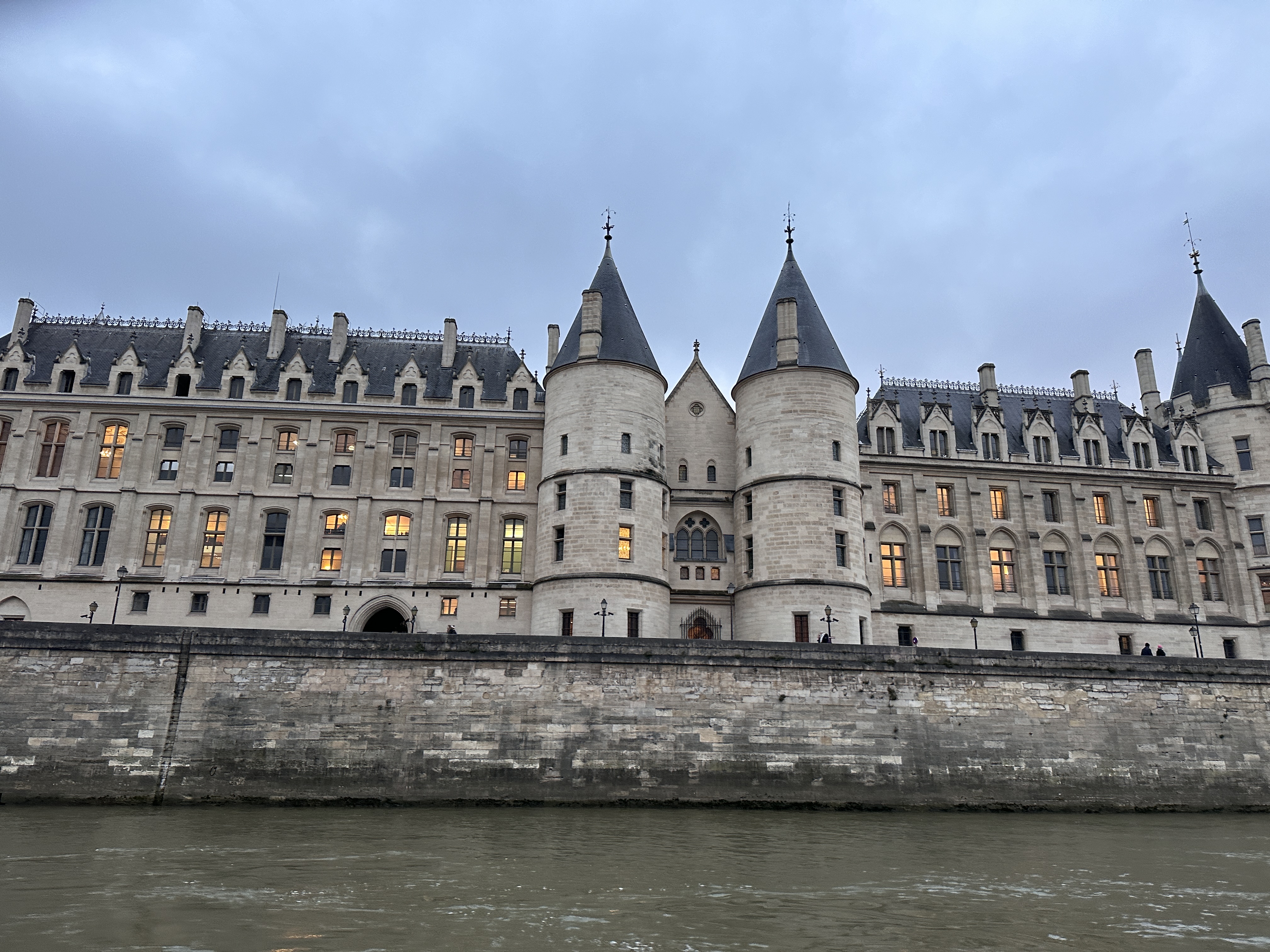 塞納河畔延展著文明的年輪,經典建築隨著時代不斷改建,在艾菲爾鐵塔附近碼頭登船後,錶定兩個小時暢遊塞納河,船上提供14種不同語言的語音導覽,上船後直上船艙的頂層,顧不得室外陰冷,沿左右兩岸一次瀏覽拍照,經過:國民議會、榮軍院、法蘭西學院、亞歷三大世橋(巴黎最美的橋)、大小皇宮、奧賽美術館(巴黎火車站改建)、羅浮宮、杜樂麗花園、聖禮拜堂、巴黎聖母院、市政廳、巴黎古監獄等著名的建築,目不暇給。當經過西堤島河道時一分為二,被各種機具掛滿傷痕的聖母院,觸景有點哀愁;遊船返回碼頭時,艾菲爾鐵塔華燈初上,華麗轉身而風情萬種,一趟遊程交替兩種情緒!