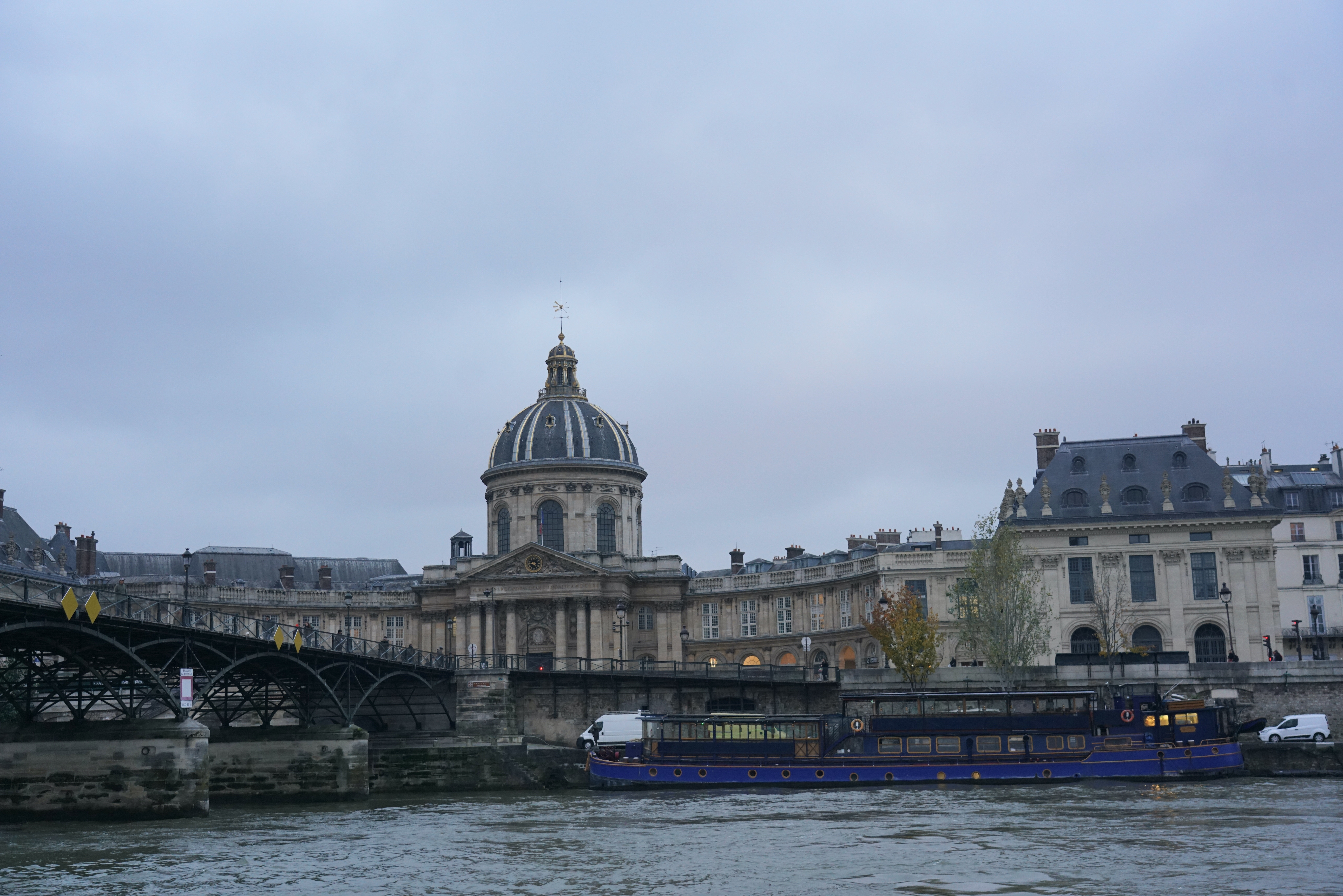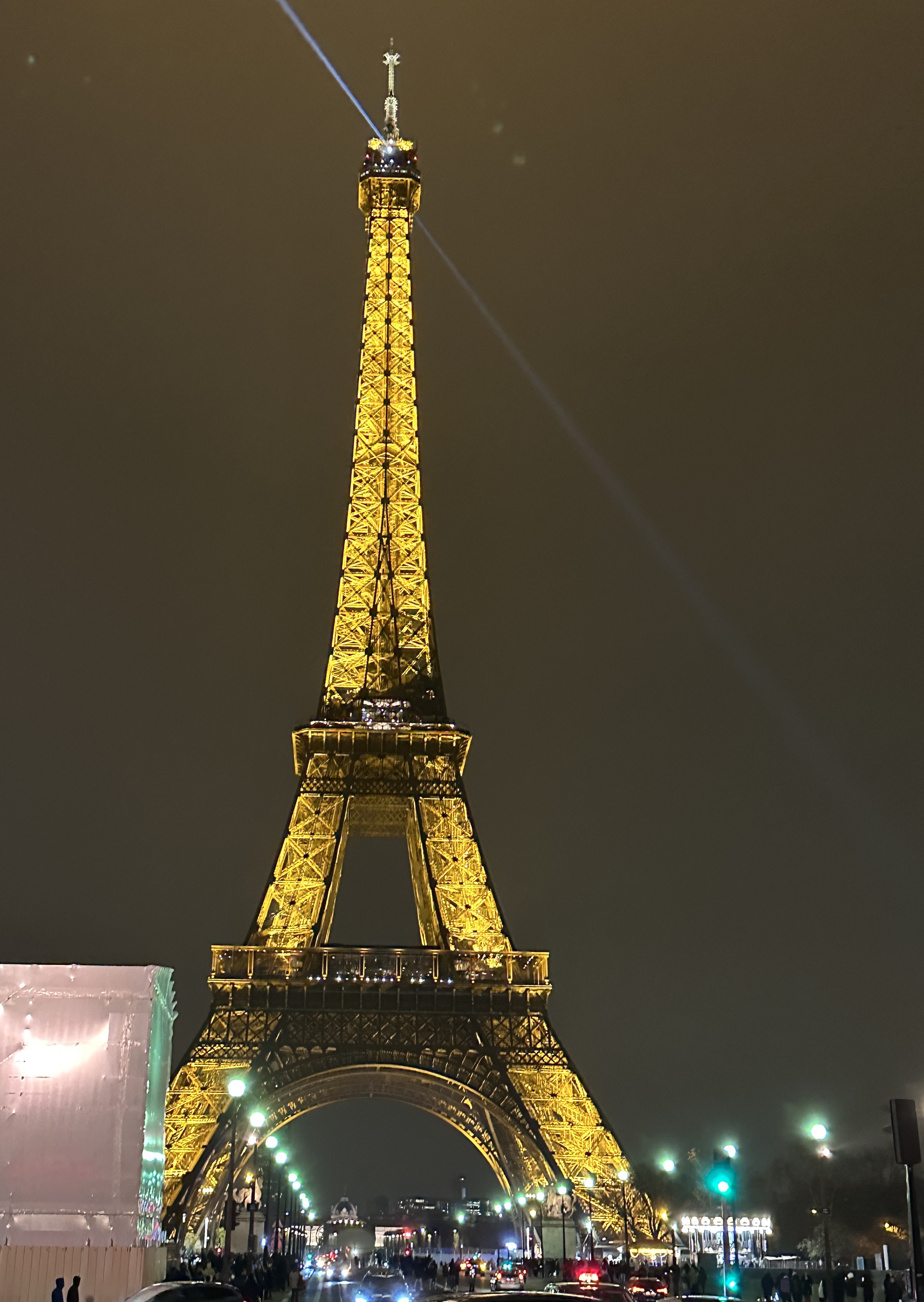 這時機出遊正巧趕上歐洲人「平安喜樂」的節慶氣氛,聖誕節市集裝飾的光彩奪目。華燈初上,香榭麗舍大道的行幹樹亮起一盞盞燈飾,造型似一排排香檳酒杯,璀璨的令人炫目。晚餐後安排兩小時半的夜遊景點,專人導遊,唯一遺憾的是途經第五區先賢祠時,遇到巴黎抗議群眾,只好改道參觀,不過最令人驚豔的是限時版的艾菲爾鐵塔燈光秀,整點閃爍金黃色燈光,被罩在光芒中艾菲爾鐵塔,浪漫而光彩華麗。