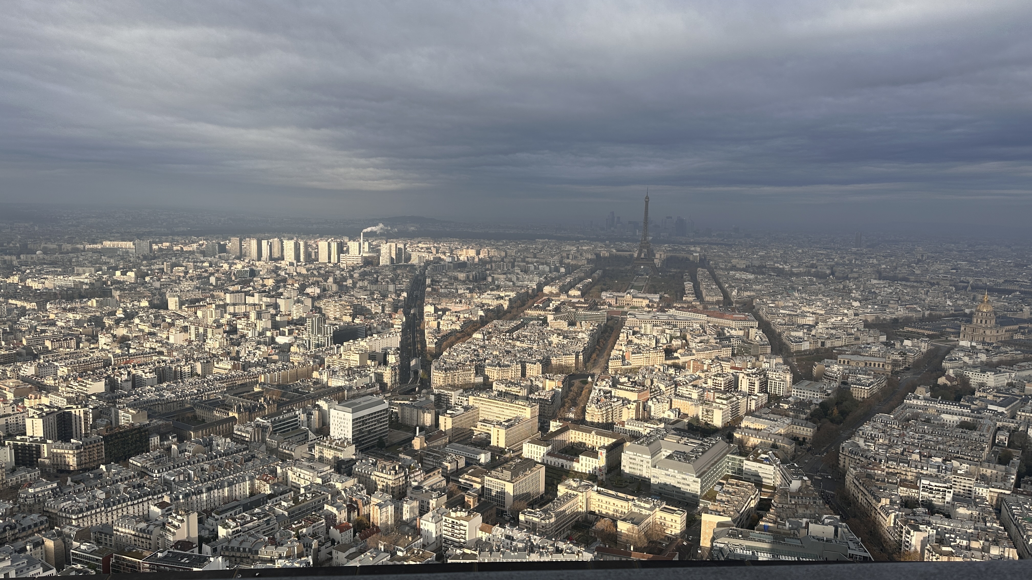 ▲蒙帕納斯大樓:巴黎市中心唯一的摩天大樓,1973年完工,共有59層樓。第56層為公共觀景台、紀念品店及餐廳等,這天早上天色不佳,登高樓層只能游目眺望巴黎,拍照裁取榮軍院與盧森堡公園影像。