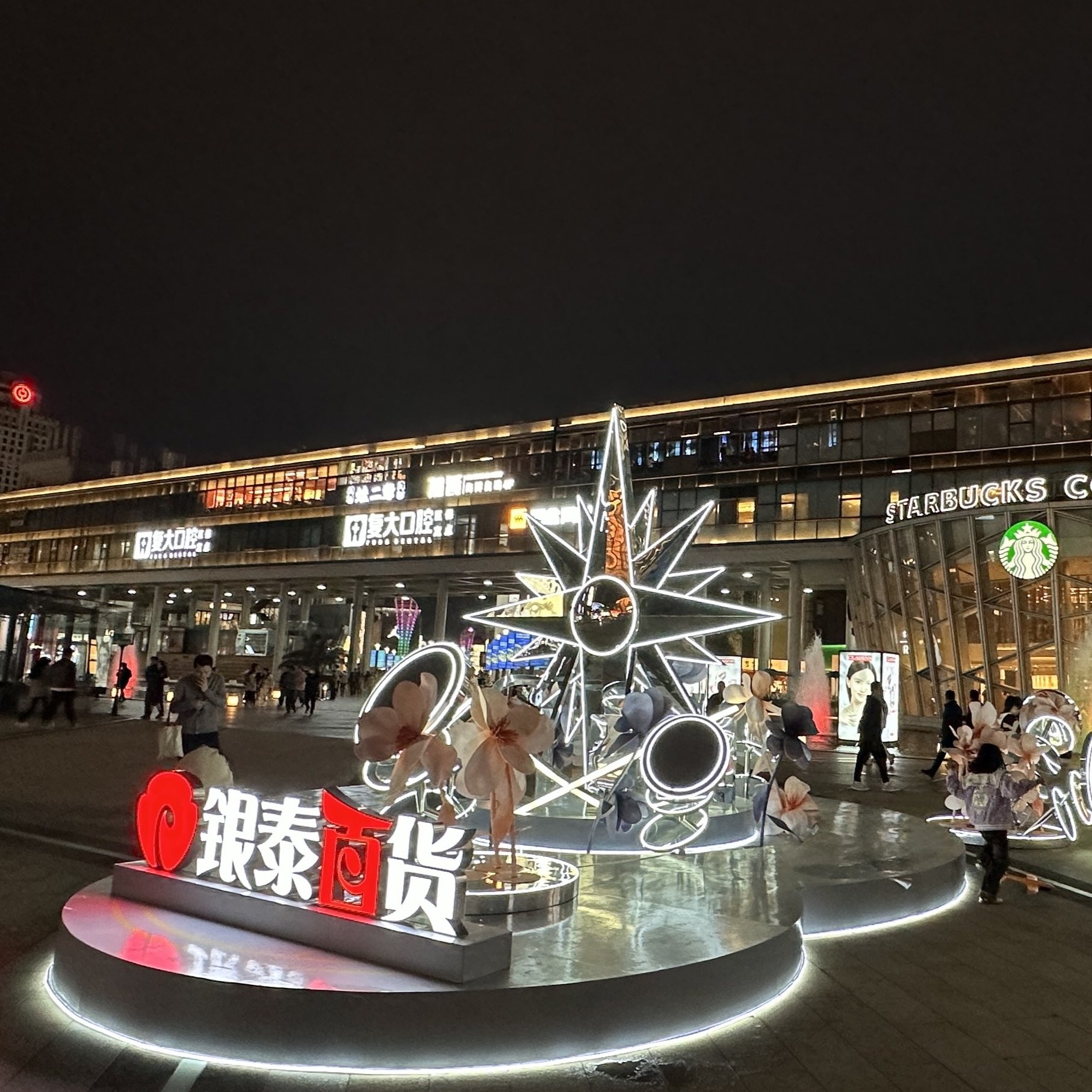▲天一廣場之夜-銀泰百貨、大湯圓裝置藝術