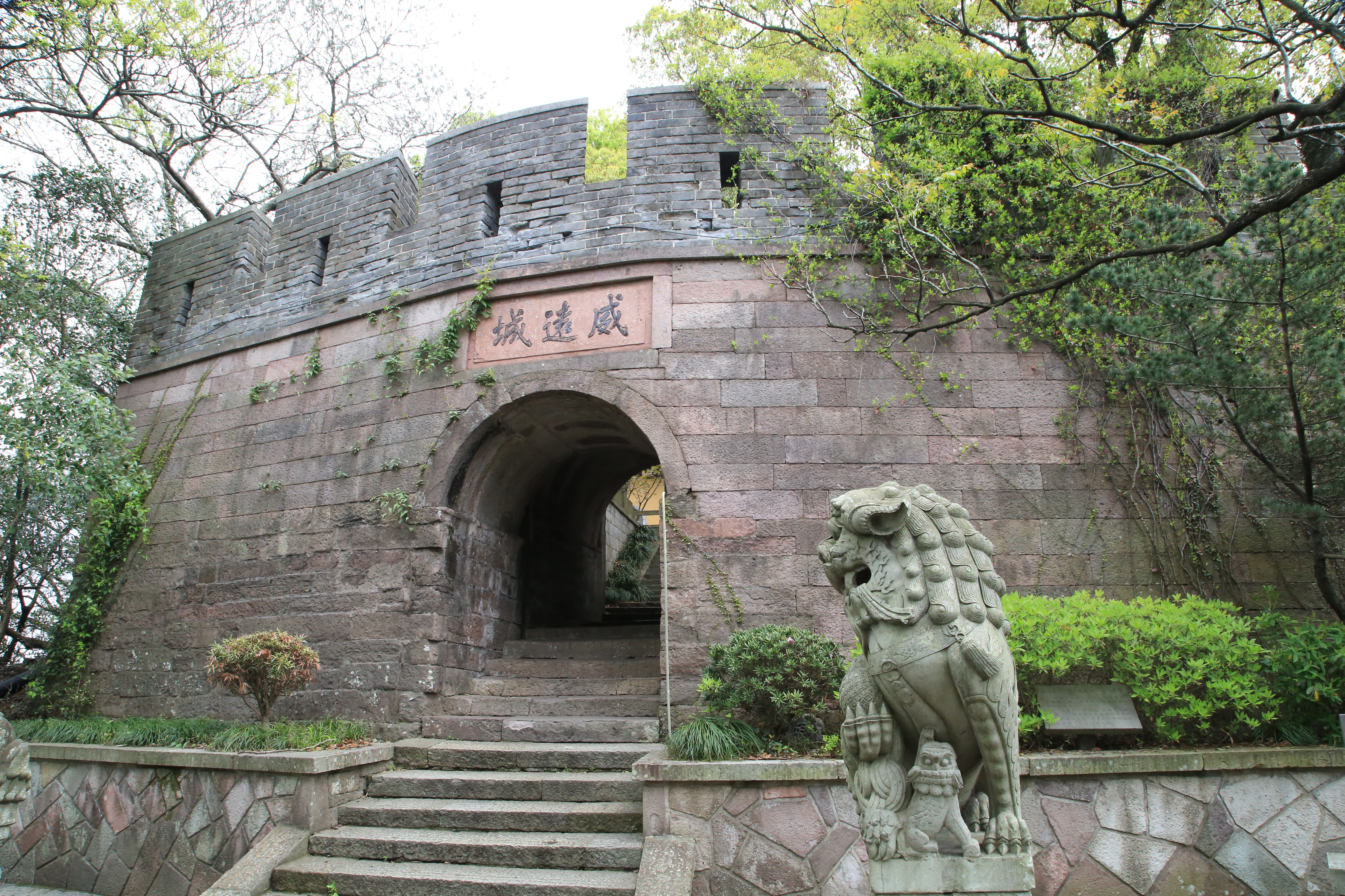就城規模:周長二百丈,厚一丈,高二丈五尺,設雉堞73個,城門額「威遠」。明清兩代陸續增建炮台,成為海防重鎮。其重要性如清浙江提督歐陽利見在《招寶山月城碑》:「前明築沿海七十二城以備邊也,最要者莫若招寶山之威遠衛城」所言確非虛假,登鰲柱塔居高臨下以壓敵衝,大有「城關鎮海、寶山戴鰲」之勢。