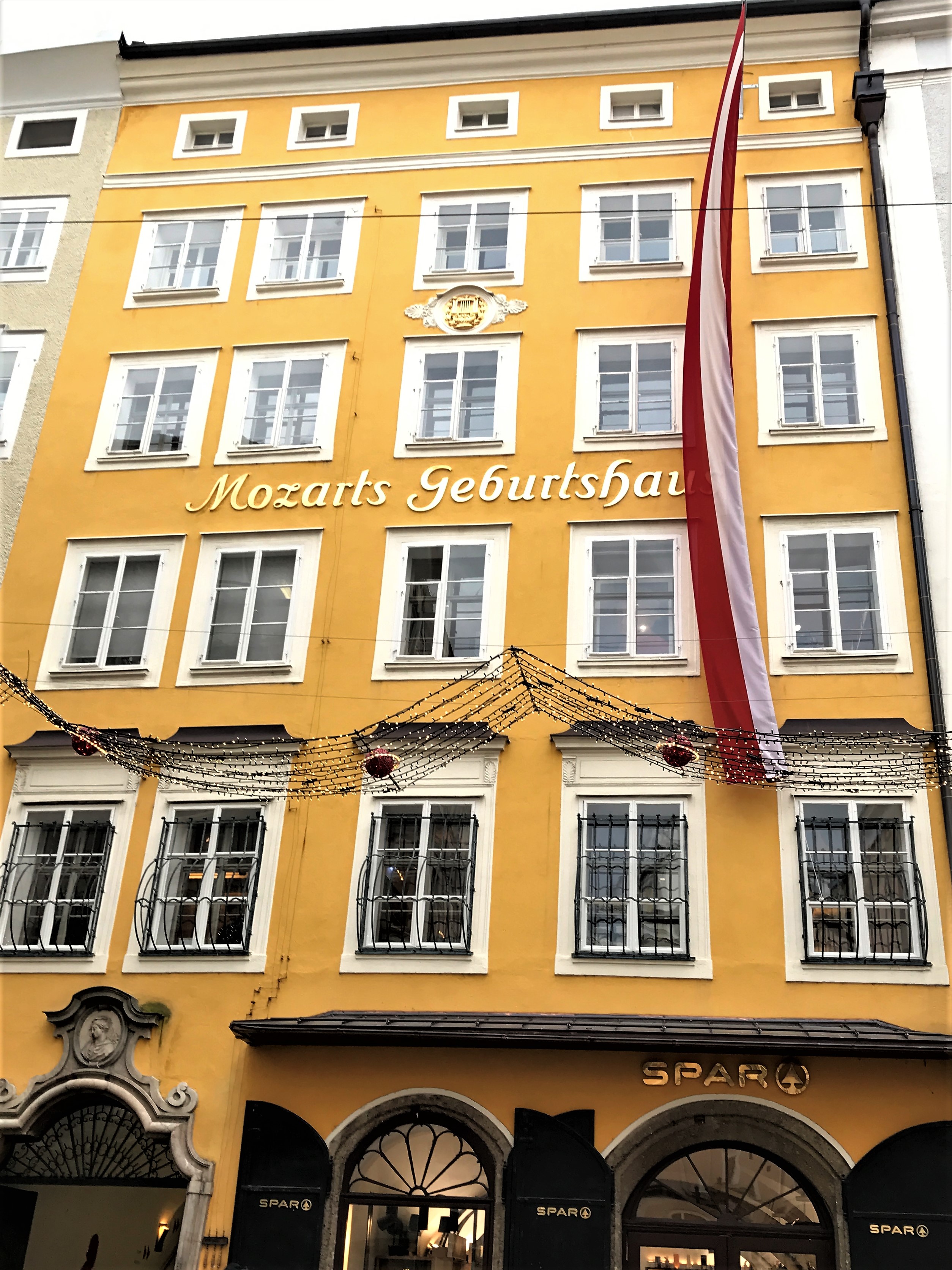 ▶蓋特萊德9號﹔儘管米拉貝爾宮的風光多麼旖麗,然而莫札特才是薩爾斯堡人心中的驕傲,過了河來到蓋特萊德街,找到一棟黃色建築,導遊指稱四樓位置(蓋特萊德9號)是莫札特的出生地,他在這裡穿街走巷渡過青少年時期,蘊育出不少膾炙人口的樂章。