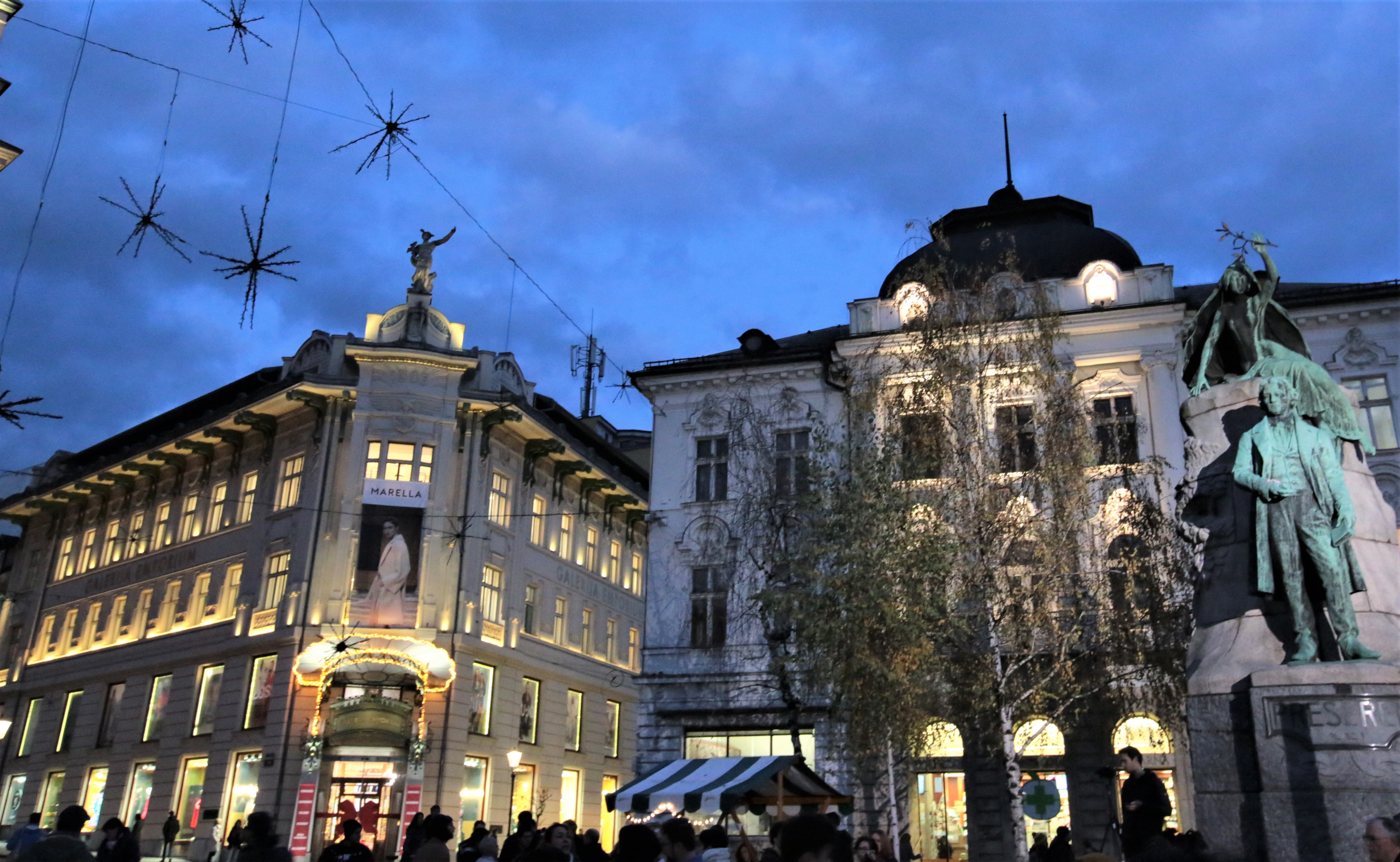11/28day下午來到盧比安娜Ljubljana。這座城市過去是鄂圖曼土耳其帝國入侵中歐的橋頭堡,長期以來奧匈帝國堅守這座戰略重鎮。1895年發生毀滅性大地震,普雷契尼克(Jože Plečnik)接手盧比安娜設計,融入多元風格表現,因此整個街道具有濃厚的巴洛克、分離式等建築風格,跨越盧比亞那河岸河走入舊城區,有三條風格各異的橋連接舊城區,新舊交融的建築,最能感受普雷契尼克的影子,他對盧比安娜的貢獻一如「高更之於巴賽隆納」!