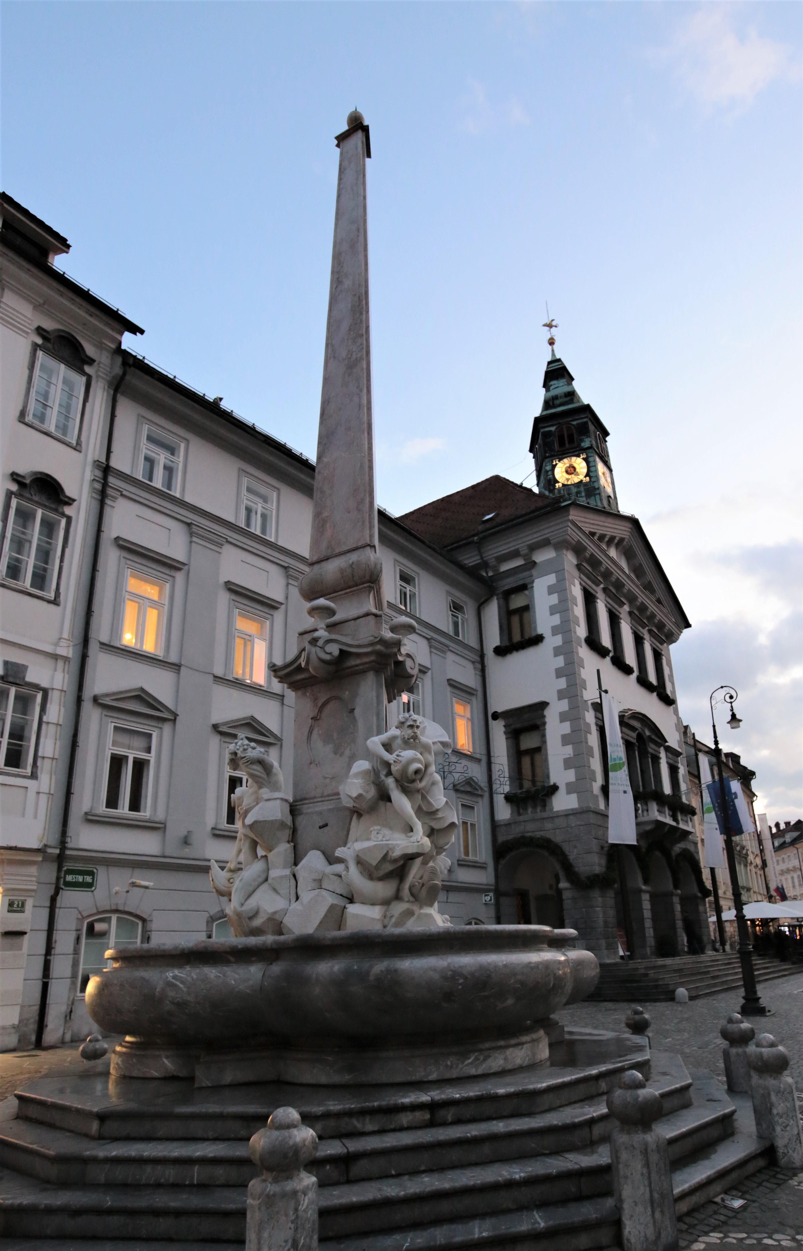 噴泉上三座神祇捧著三只陶甕,分別代表這個區域的三條河流:薩瓦河(Sava)、克爾卡河(Krka)與盧比安娜河(Ljubljanica),