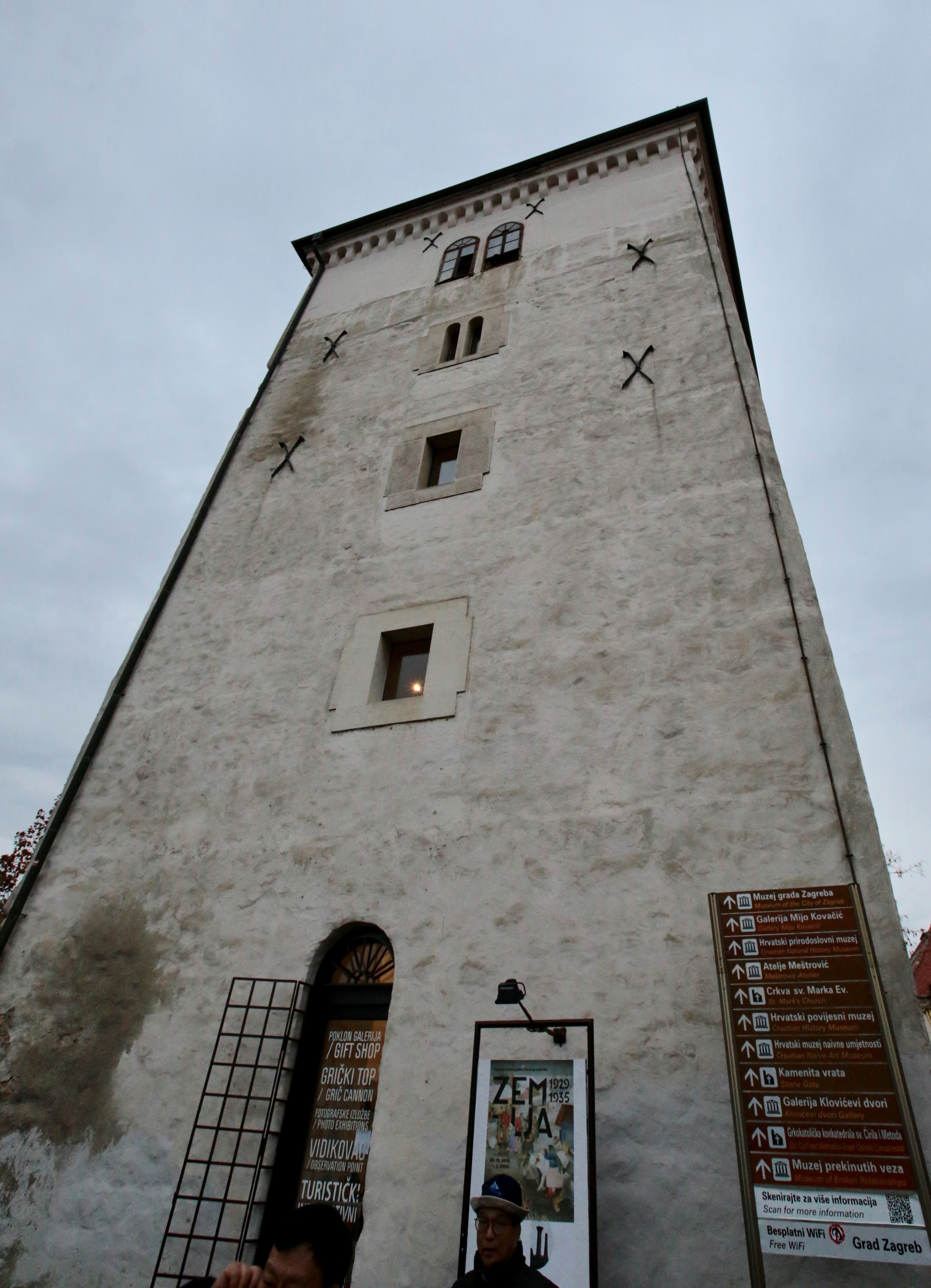 繼續往廣場軸線街道走,可以看到東正教教堂、聖凱薩琳教堂(sv Katarine)、失戀博物館、羅特爾許查克塔。羅特爾許查克塔(Kula Lotrscak):字意是警盜之鐘,十五世紀時敵軍來犯,塔裡的加農砲,曾精準擊中城外土耳其將領用餐的烤雞,知難而退。