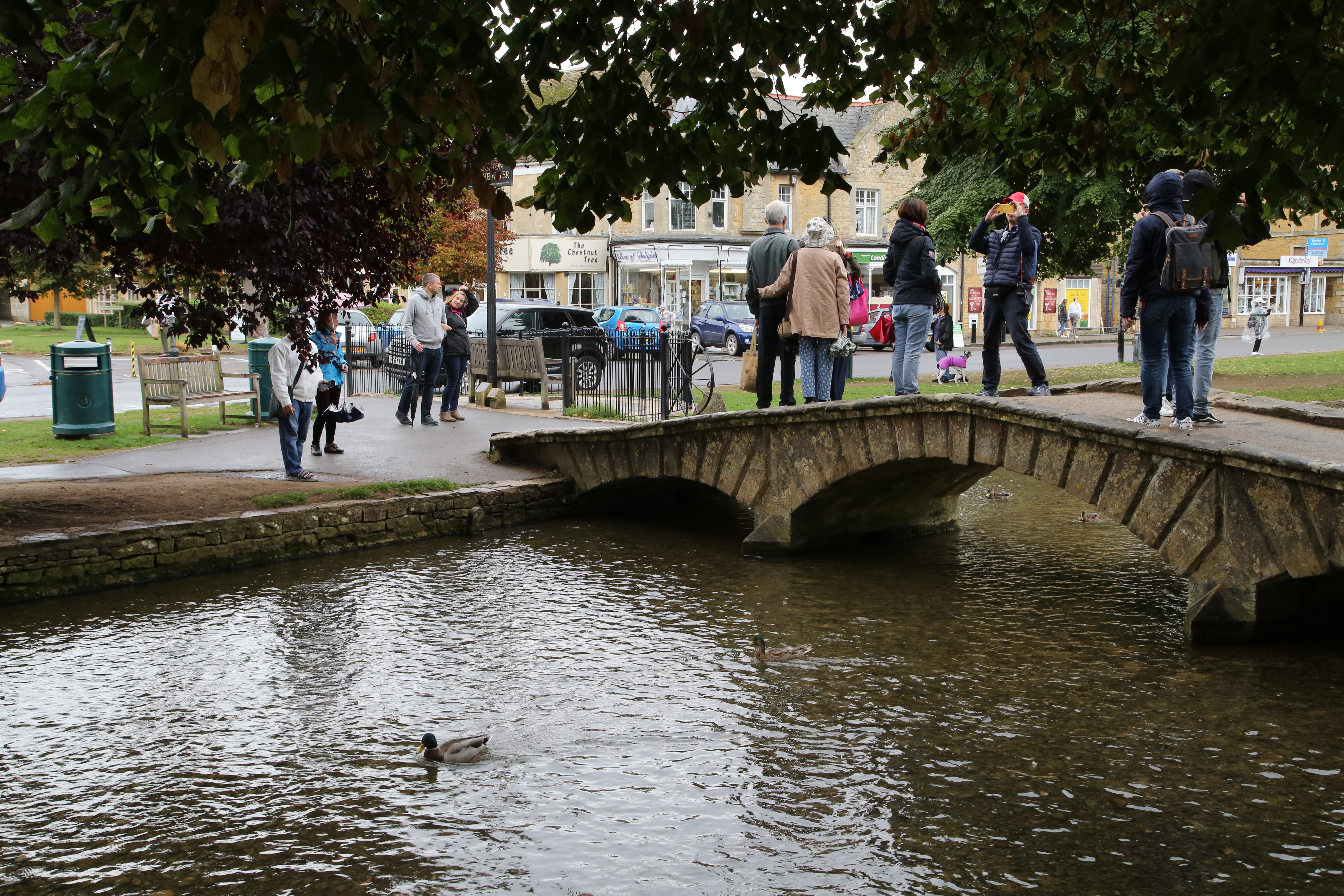 位於英國最美的鄉村-科茲窩,被旅遊業譽稱為小威尼斯-水上伯頓(Bourton-on the Water)。從停車場下車步行約十分鐘,就到了小鎮中心,小鎮辨識度極高,如小時候歌詞「我家門前有小河,小河裡有白鵝….」小鎮淌流一條美麗小溪,潺潺溪水倒映著拱橋與綠柳,一群野鴨悠遊在清澈的溪裡戲水洗羽。沿著溪邊是一棟棟英式的鄉村民居,斜屋頂蜜糖色的石頭屋,很有特色。我們來時天空飄著細雨,戶外咖啡座空蕩蕩,小鎮似乎在等一人的咖啡;少了咖啡座的人聲鼎沸,反而更悠閒地漫步於街巷之間,別有一番空靈而詩意的小鎮。