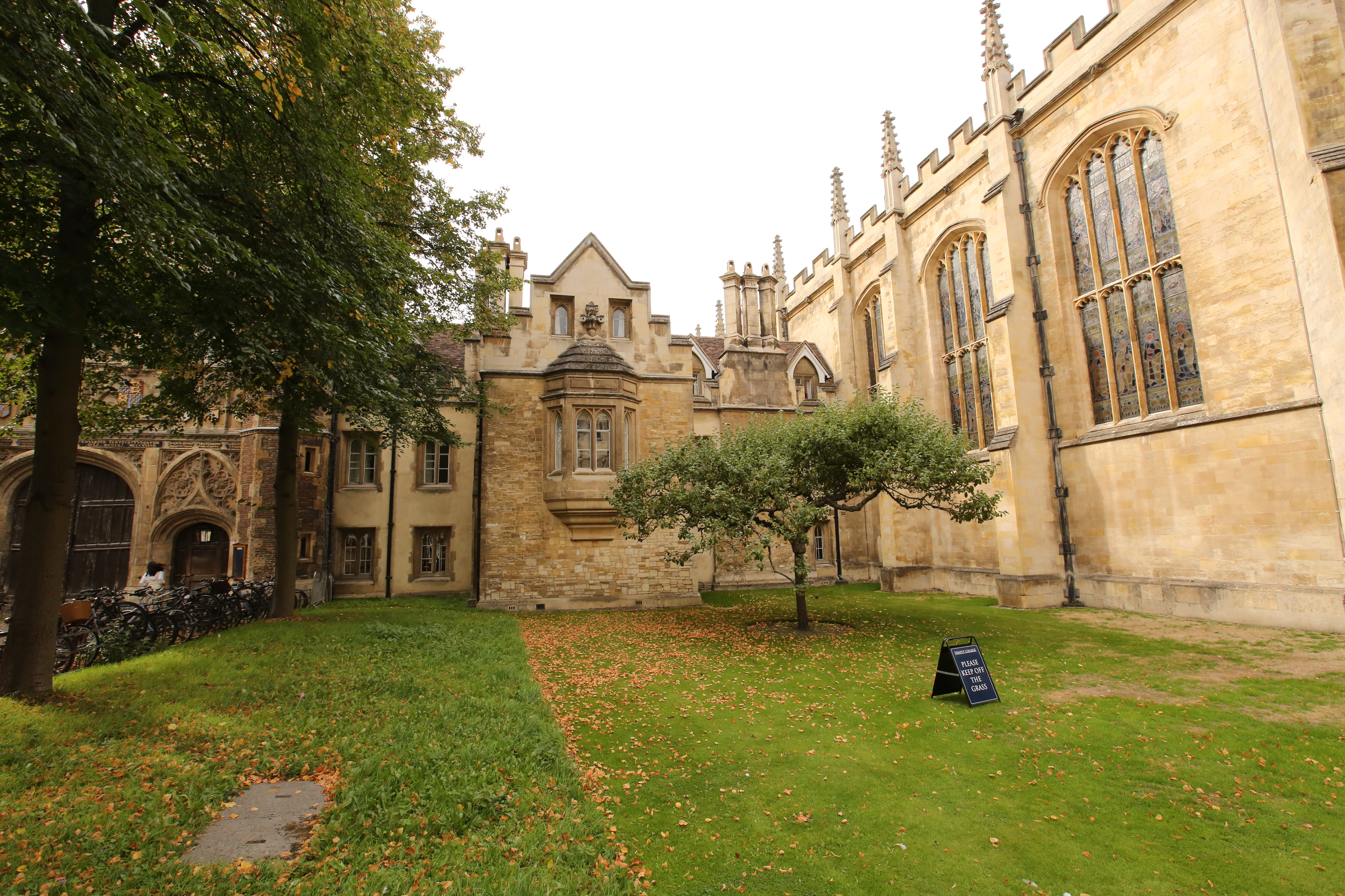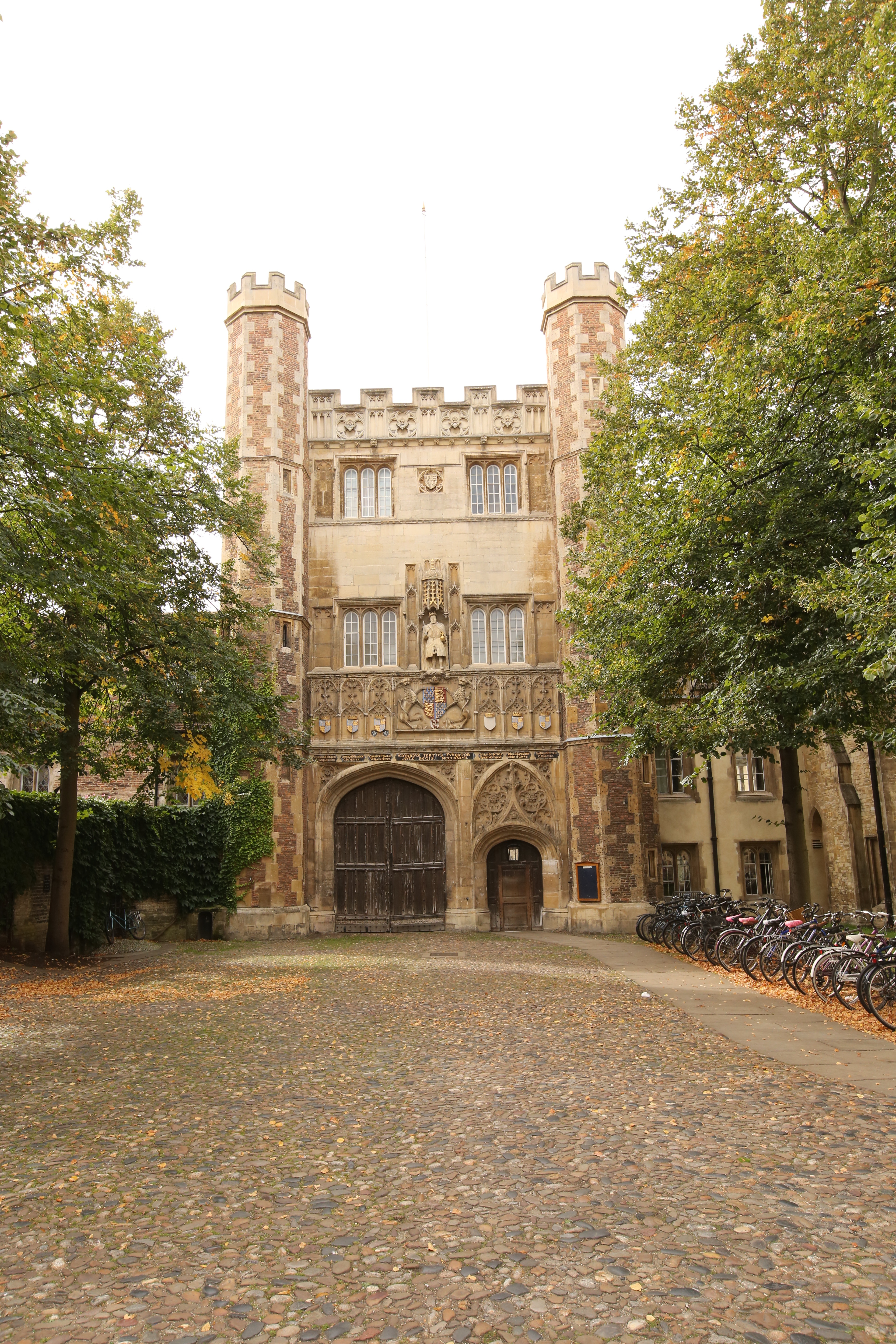 ▲三一學院:是劍橋大學最大的學院,禮拜堂外有一棵從牛頓家鄉移植來的蘋果樹,以紀念這位萬有引力之父。/三一學院的門樓