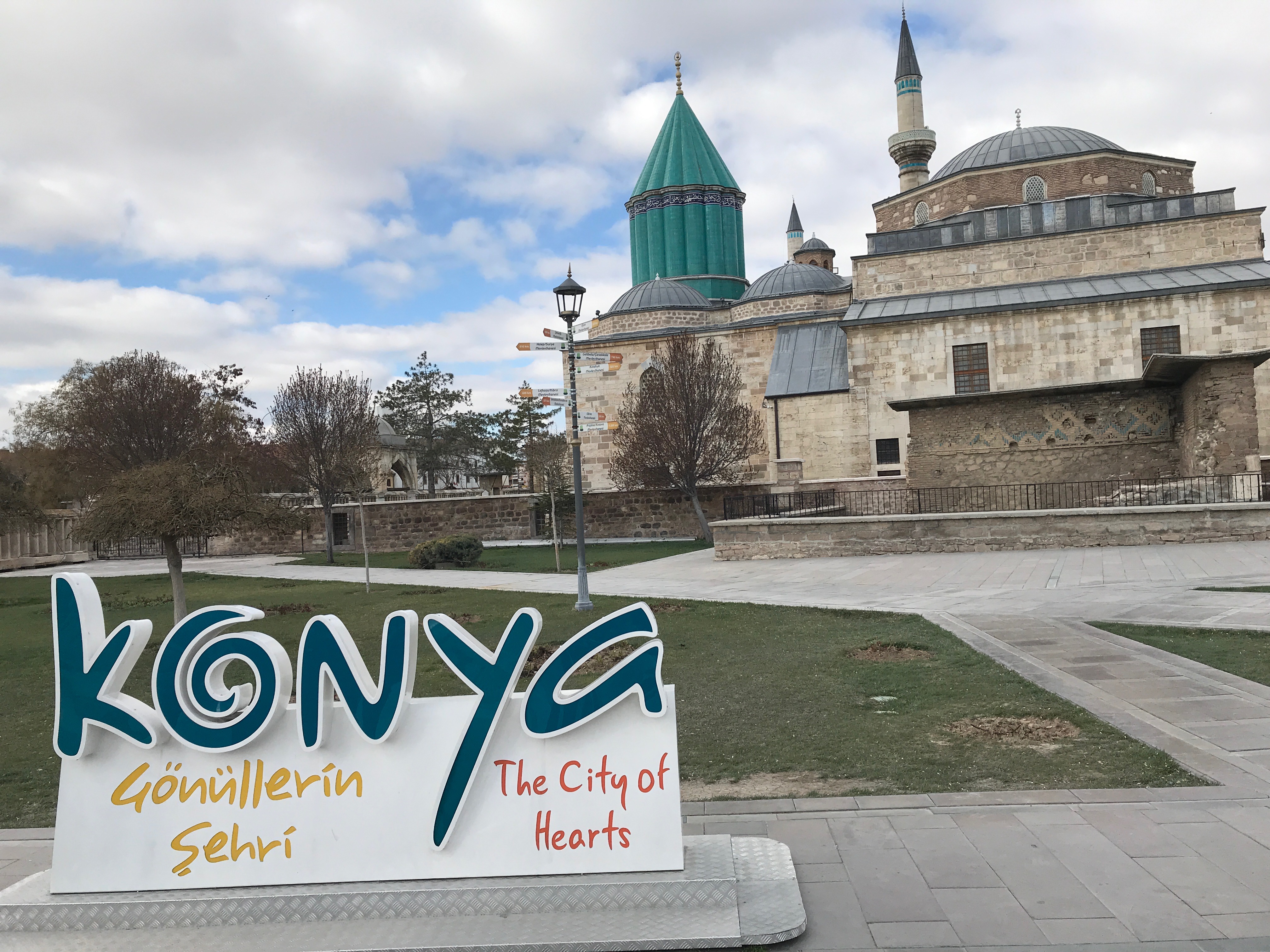 穿越高原地形,前往安那托利高原古老的城市-孔亞,十二、十三世紀曾爲塞爾柱土耳其的首都,也是伊斯蘭神秘迴旋教派的發源地。。沿乾淨的街道一眼就到綠松石拼貼的高塔,相當搶眼。走入園區博物館是一座清真寺建築,牆面貼著藍綠色磁磚,較為特殊的是眾多大小型的圓頂,對應笛子般的尖塔,四周庭園環境與植栽相當的優雅而清淨;對於穆斯林而言這是非常神聖的地方,因為蘇菲教派的精神導師梅夫拉納.魯米就埋葬在這裡。