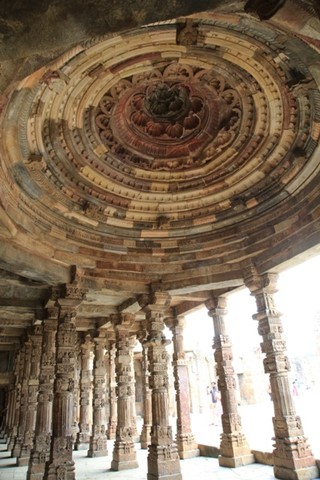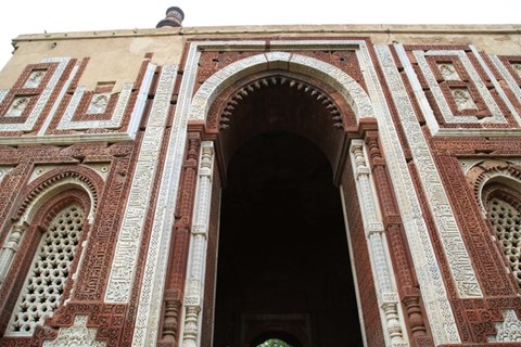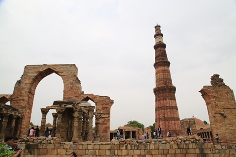在德里吃過午餐,首站來到世界文化遺產的古達明那高塔,建於1192年的宣禮塔,是全印度最高的石塔,也是全印度最早的伊斯蘭建築。原來這座塔是蘇丹國王庫特布丁·艾伊拜克為紀念征服印度所建,塔高5層72.5公尺,以紅砂岩和大理石為建築材料,塔壁周邊雕飾著阿拉伯式圖案與雕刻著古蘭經銘文,以及點綴著印度式的藤蔓圖案與花樣。融合了伊斯蘭與印度的藝術風格。