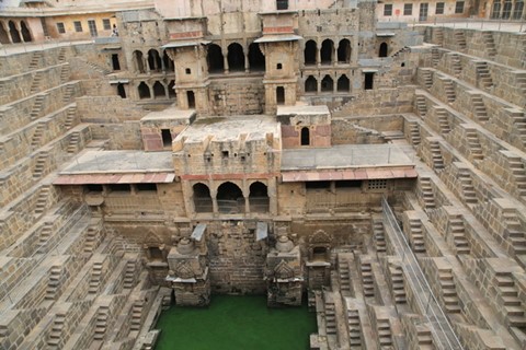 地底宮殿位在艾芭奈麗小鎮,也稱做月亮水井,因為拉賈斯坦邦受沙漠區影響,在西元九世紀,拉基.夏特王想到了一個避暑的好辦法,找人挖了11層樓深的地底宮殿,最低處水池是戲水沐浴的好地方,也具有夏季調節氣溫的功效。不遠的哈莎特.瑪他女神廟 (HARSHAT MATA)為古印度歡樂與光明的女神,因此少不得去神廟參拜。