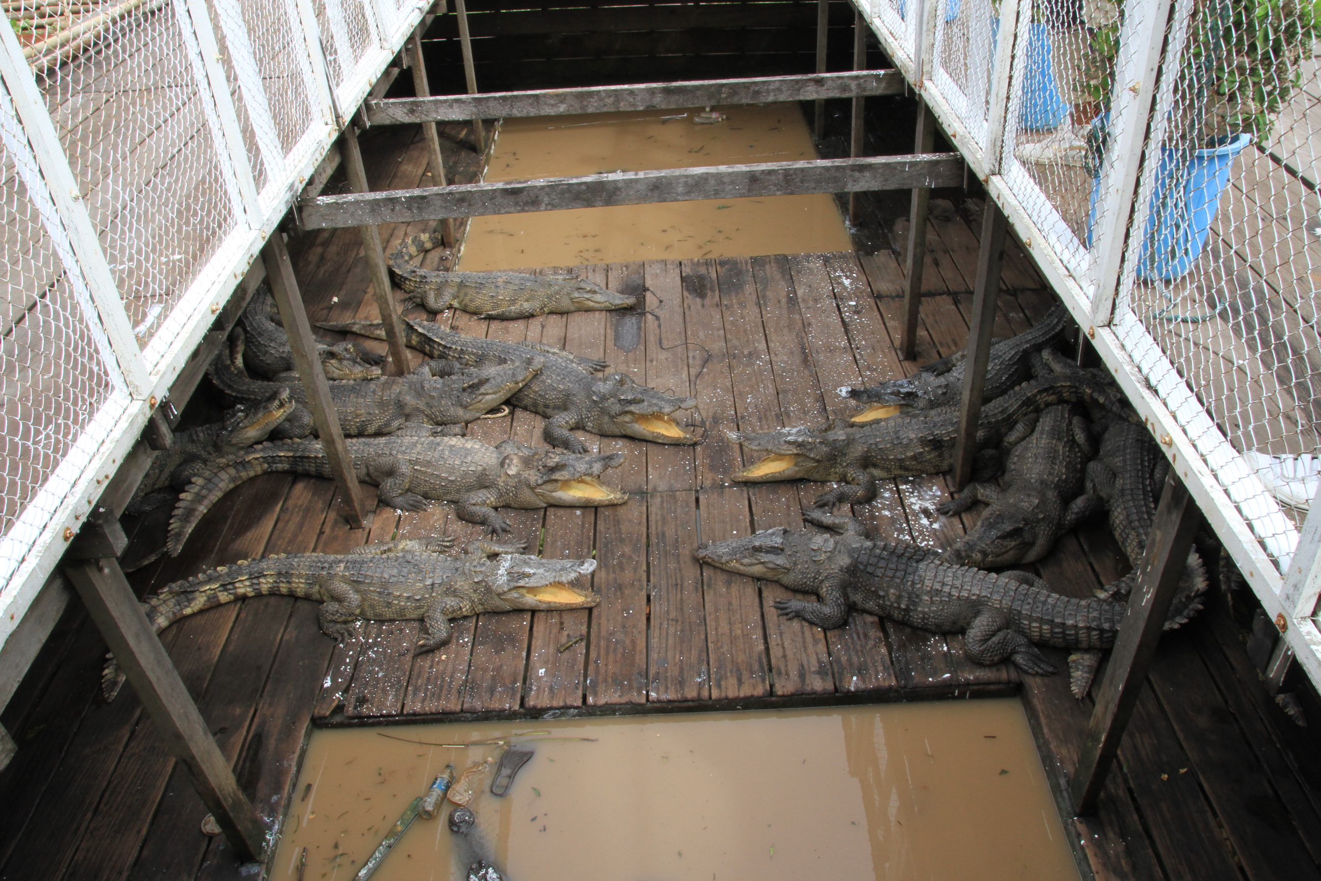 ▲洞里薩湖鱷魚養殖場/@撐著華蓋傘的船 /@湖面上到處看到小神亭