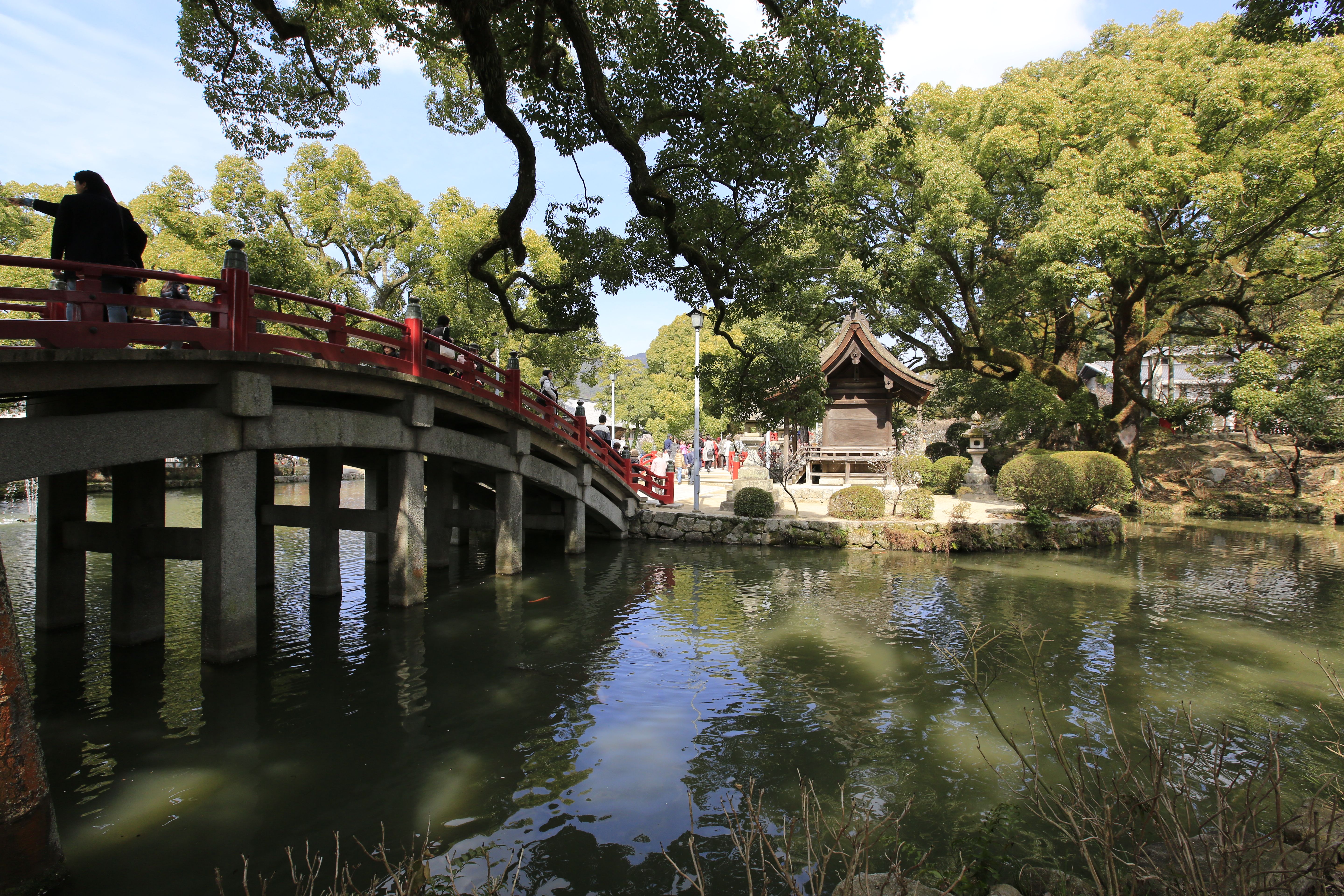 飛抵福岡,直抵太宰府天滿宮,是天滿宮的總廟。被尊為《日本學問之神》的菅原道真,相當於孔子的地位,在他被貶後客死於此地,在其墓園上修建天滿宮,目前被指定為日本國家重要文化遺產;前來參拜的遊客絡繹不絕,多數是祈禱學業精進…。進入鳥居後,日式園林造景優美。