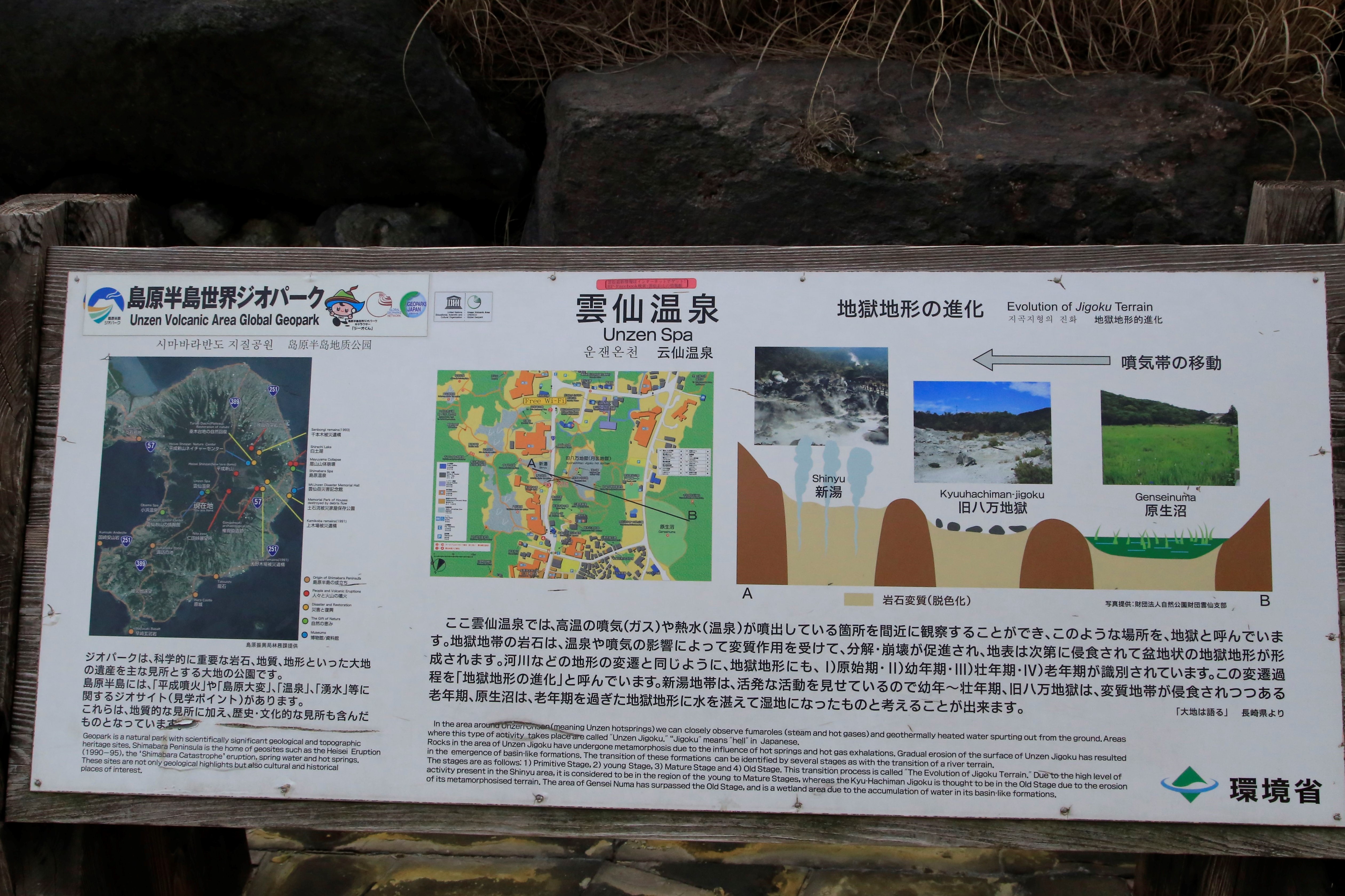 ▲雲仙地獄公園/@眺望廣闊的島原半島/@島原半島案內地質與雲仙地獄解說牌
