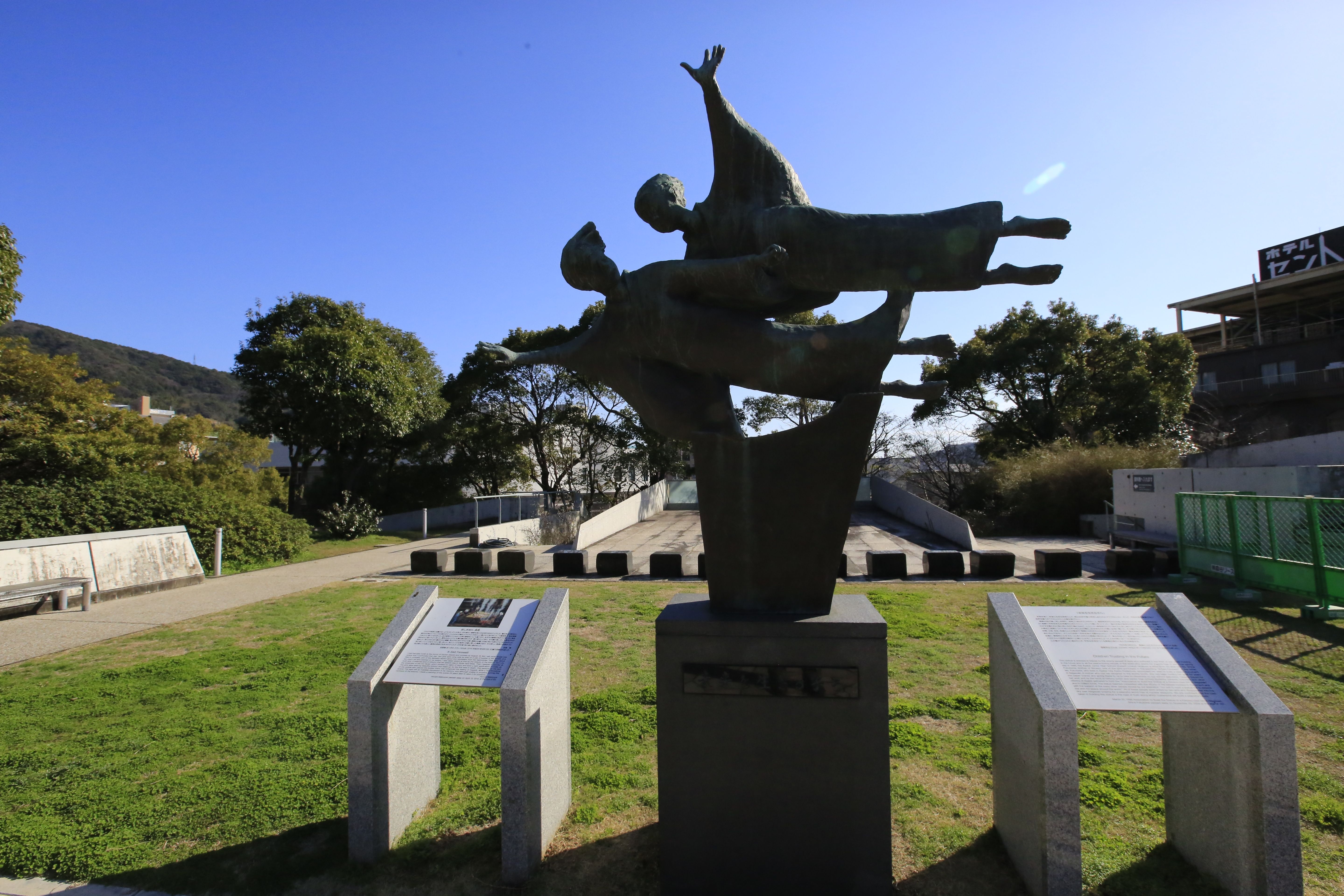 下午驅車前往長崎市核彈原爆點。以肅穆心情進入資料館內參觀,館內展示原爆的相關史料,牆上時鐘停在 11時02分的時鐘,似乎有意警示世人不要忘記戰爭的殘酷,以及核彈的毀滅性。走出園區外一尊尊的雕像,立於光影底下,合十為原爆犧牲者祈福吧!願亡者安息,來著以慈悲心看待生命可貴!