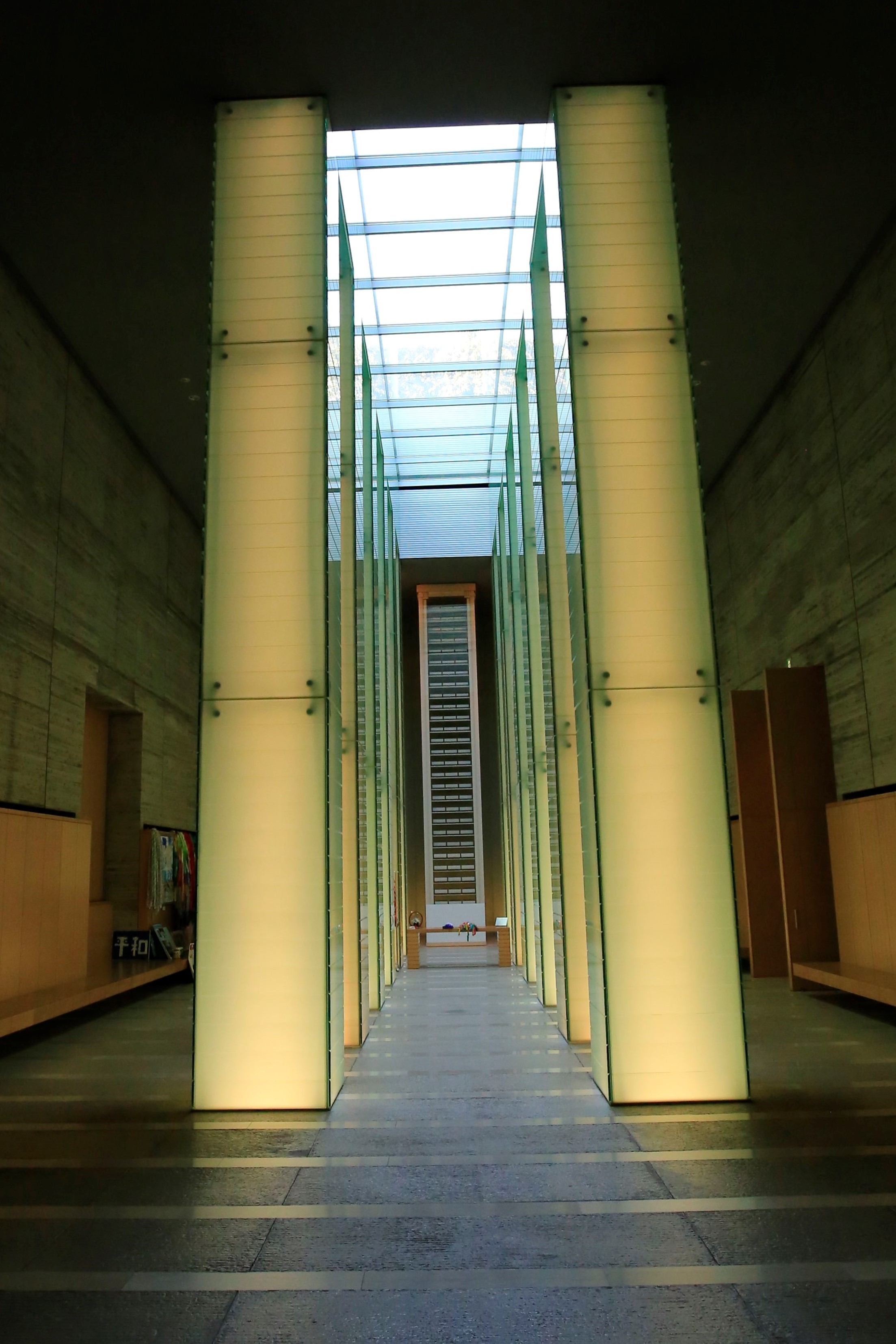 ▲和平祈願館與廣場/@光影底下的祈和雕像/@光雕著無數受難著的姓名