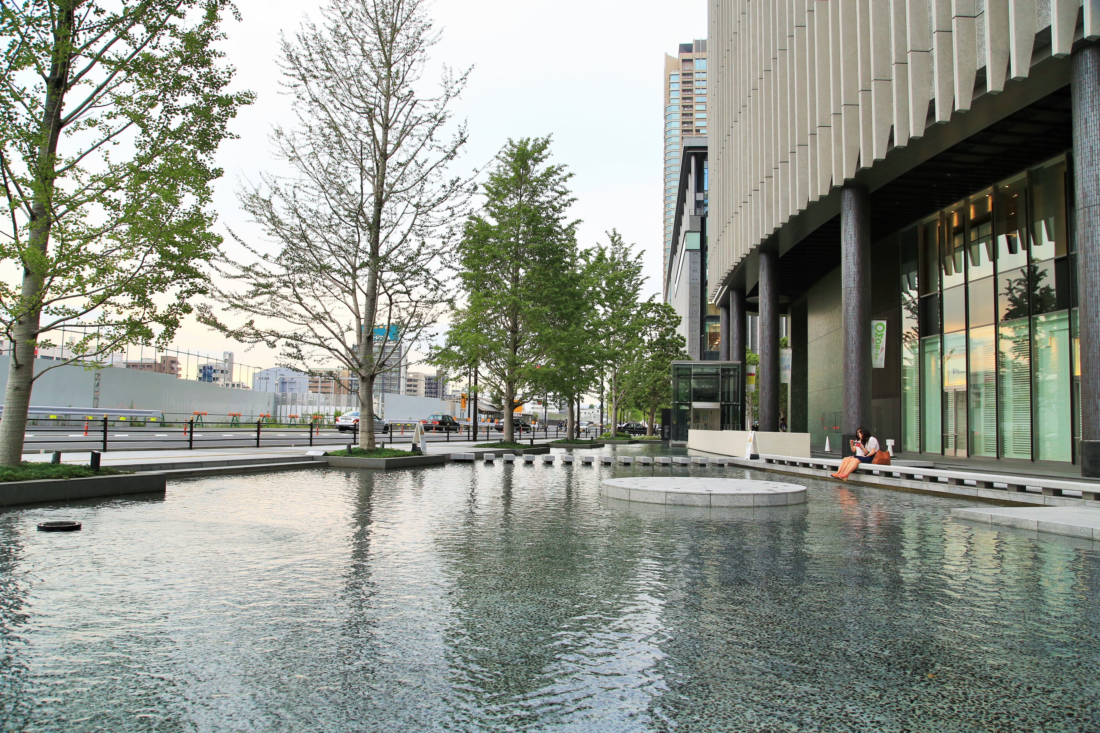 ▶⇝大阪車站:大阪車站位於梅田附近,東面和南面都是繁華的市區,摩天高樓大廈林立。車站大廈是西日本最大的車站,匯聚許多長途列車的終點站、起發站或中途站。整座車站設計分別以水、綠、時間、聲音、訊息…等做為主題裝飾。走入現代感十足的車站大廈,沿手扶梯盤旋而上,包括:時空廣場、中庭廣場、南廣場、琴鐘廣場、風廣場、太陽廣場、柔和庭園、天空農莊等。出車站最令人驚豔的是水景廣場,廣闊的親水區和水瀑,讓四周玻璃帷幕的冷色調,變得柔和許多;跟一般遊客一樣,坐在台階上,慢慢欣賞車站內外設計的巧思和創意裝置,在轉乘停留片刻,誰說車站只是驛動轉乘下一站的地方?