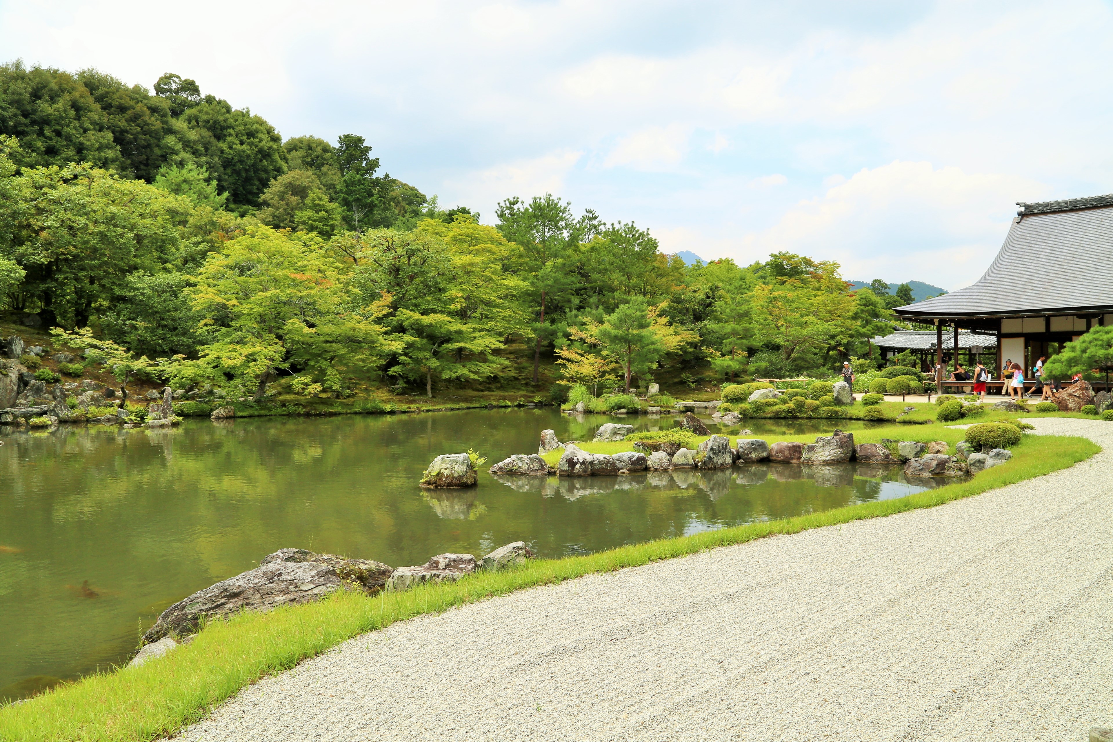▶⇝天龍寺:位於嵐山嵯峨野,是臨濟宗天龍寺派大本山的寺院。1339年足利尊氏為祭祀後醍醐天皇下令建造,初代開山住持是夢窗疎石,規模十分恢宏,在京都五山中位居首位,被聯合國教科文組織列入世界遺産名單之中。寺內有大方丈、小方丈、法堂、禪堂、多寶殿、本殿等古建築。而我尤喜愛庭園設計,其中曹源池庭園,由夢窗國師親手設計,以白砂、蒼松、淺池、石橋等,並借景遠山,營造出詩情畫意般庭園,如以櫻花或楓葉做前景,堪稱絕妙,無怪乎被指定為國家特別名勝第一號。