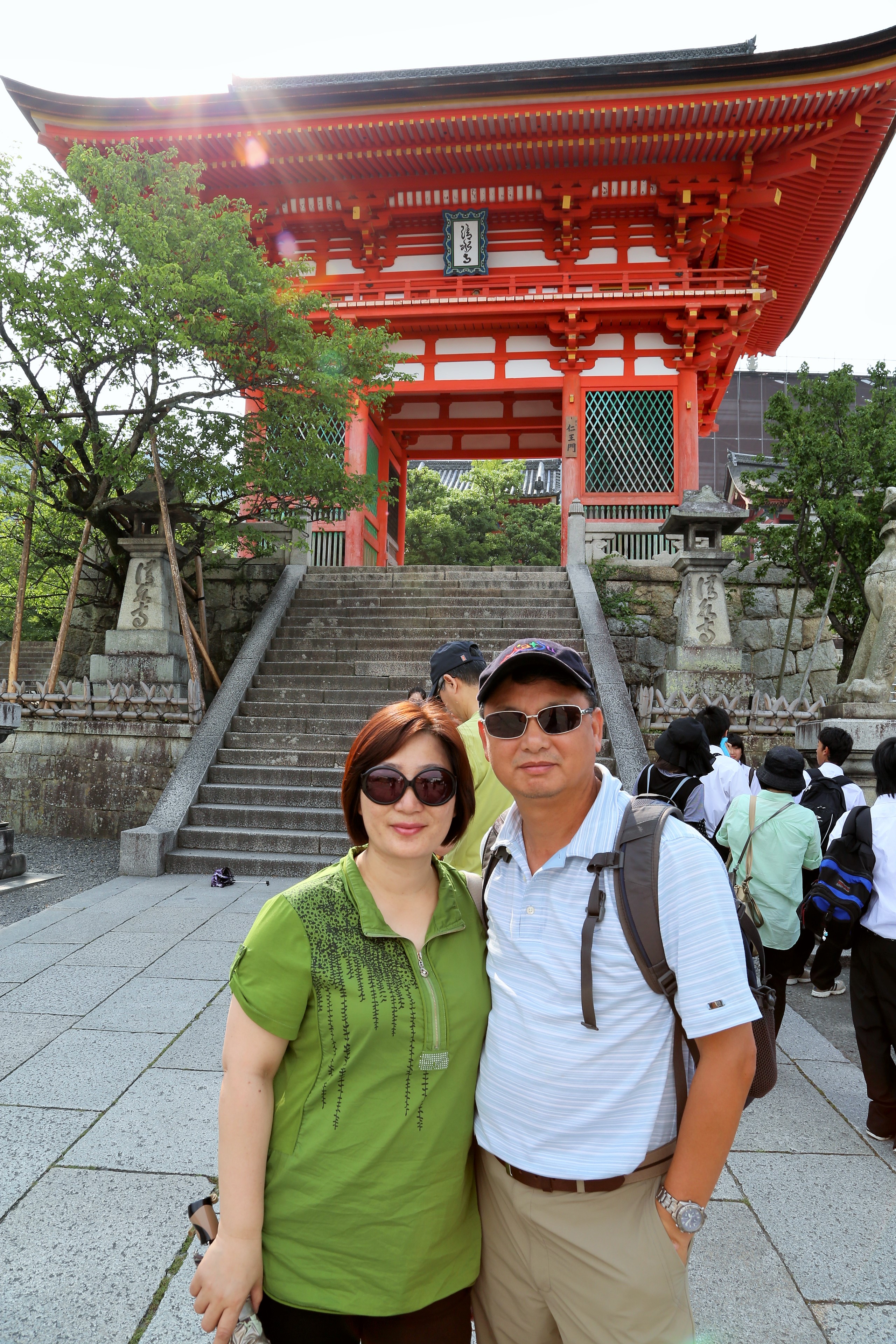 ▶⇝清水寺:建於西元798年,是平安時代建築物,歷史相當悠久,因為寺內擁有一處清泉而得名,這座寺廟正殿曾多次燒毀,最後依原貌重建於1633年;從紅色而醒目的仁王門進入本堂參拜,正殿供俸著11面42臂千手觀世音菩薩,殿前的木造陽台被稱為「清水舞台」,採「懸造式」的工法建造在斷崖之上,整個木架構使用139根柱子、410多塊木地板,以接榫技術相互銜接,起扭力傳導平衡作用,以日本多地震國家而言,能躲過阪神大地震,傳統工藝技術不由讚賞。清水舞台位置絕佳,眺望京都季節風采,感受大自然的遞嬗與彩顏,初春時節遍野櫻花如細雪般繽紛飄飛,深秋若烈火般燃燒的紅葉。清水寺四周有幾條石板鋪的街道,如清水坂、二年坂、三年坂等,兩旁林立古色古香的日式商舖,許多和果可以試吃,最常見的八橋餅,內餡包括有紅豆、黑豆、抹茶等口味,在這裡逛街的樂趣,可邊吃邊走邊欣賞形形色色的建築和遊客。