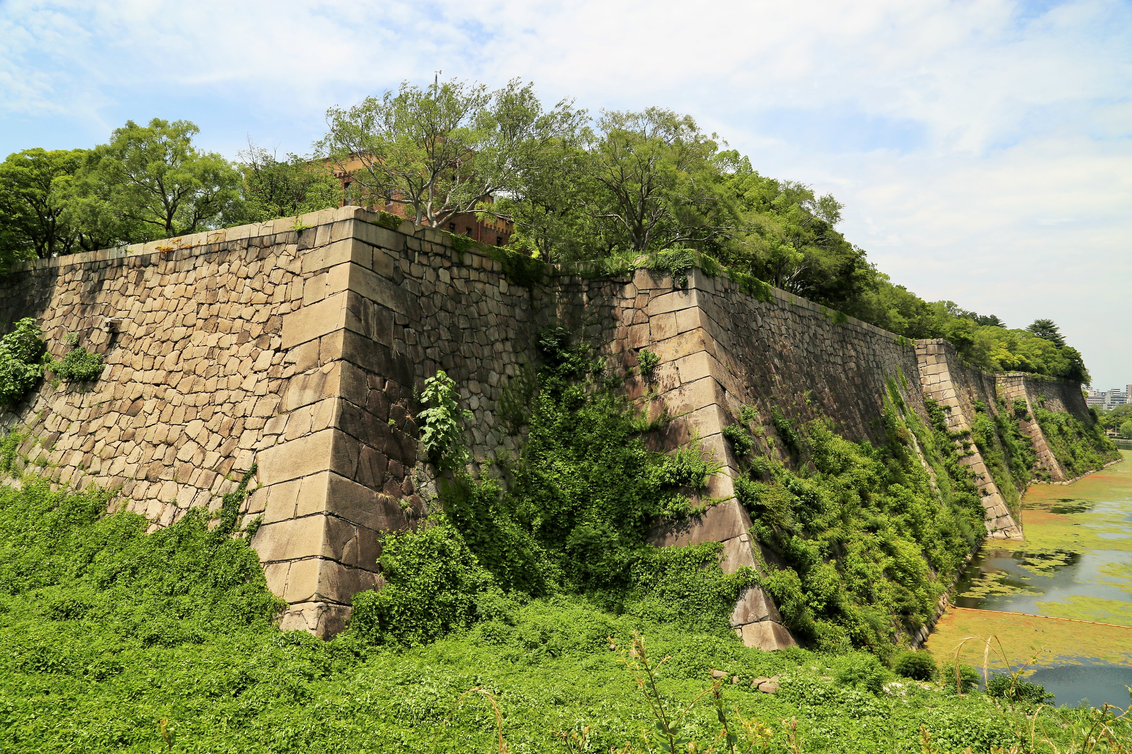 大阪自古以來就是重要港口與商業重鎮,16世紀大阪成為本願寺的本山,稱為石山本願寺或大坂本願寺,織田信長經過多年征戰,攻下石山本願寺並付之一炬。後來豐臣秀吉在原址重建大阪城,大興土木修築運河,今日大阪市許多地名「堀」即與當時開鑿運河有關。大阪夏之陣後,於1620年開始重建大阪城至1629年完工,修建大阪城時大肆破壞了石牆與護城河。江戶時代大阪一直保持著日本全國物流中心,是日本歷史上三大名城之一。