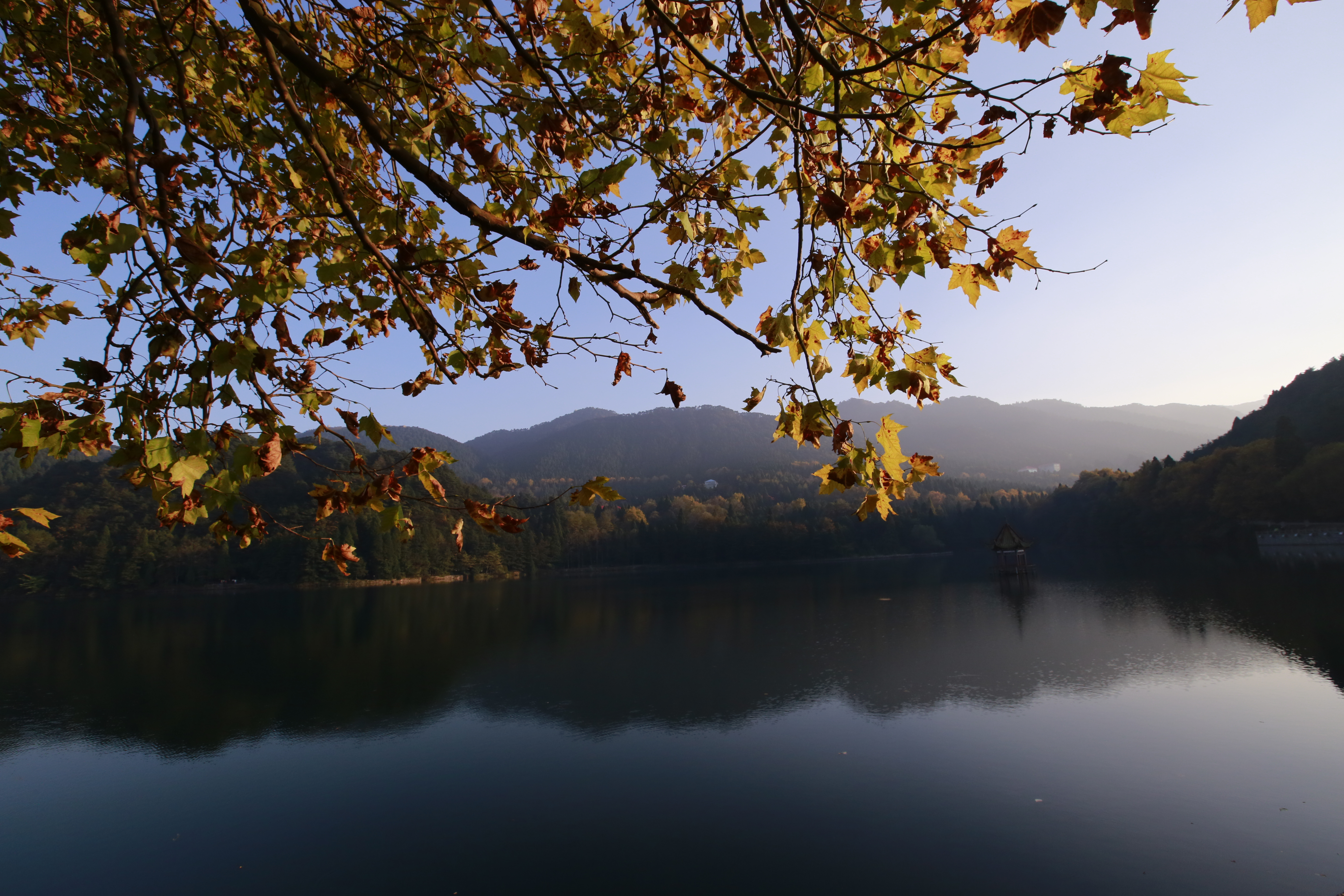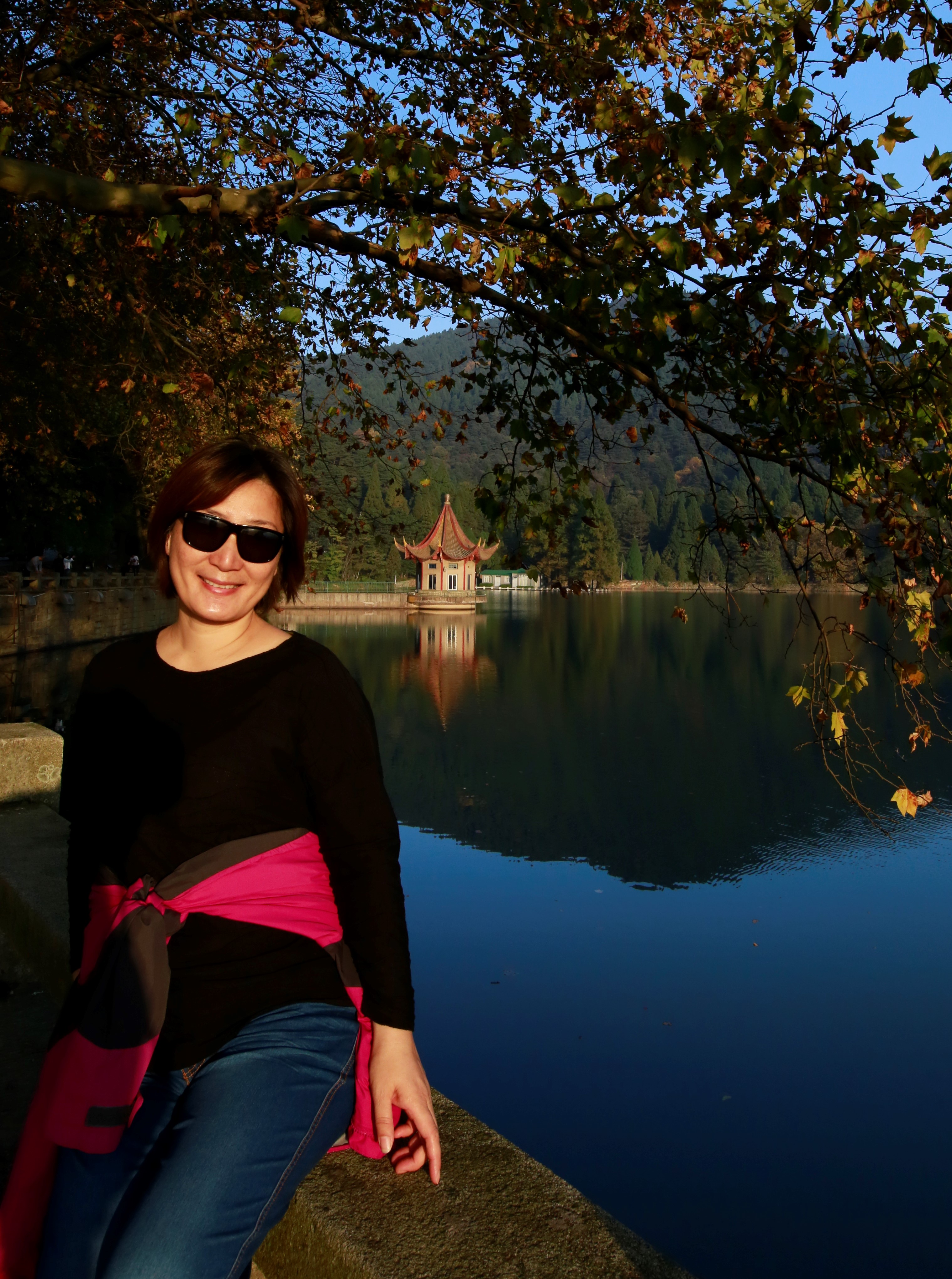 ▶蘆林湖:車到廬林湖已接近黃昏,天色正好拍景,湖濱遇新人拍婚紗照,秋湖如鏡,似發光的碧玉鑲嵌在林蔭秀谷之中,山色倒影相映成趣,難怪毛澤東喜愛這裡的環境,建避暑的別墅於湖濱,並多次下湖游泳。探究這裡的地質環境,是屬於第四紀冰川期,曾是廬山最大的屯積冰雪的谷地。