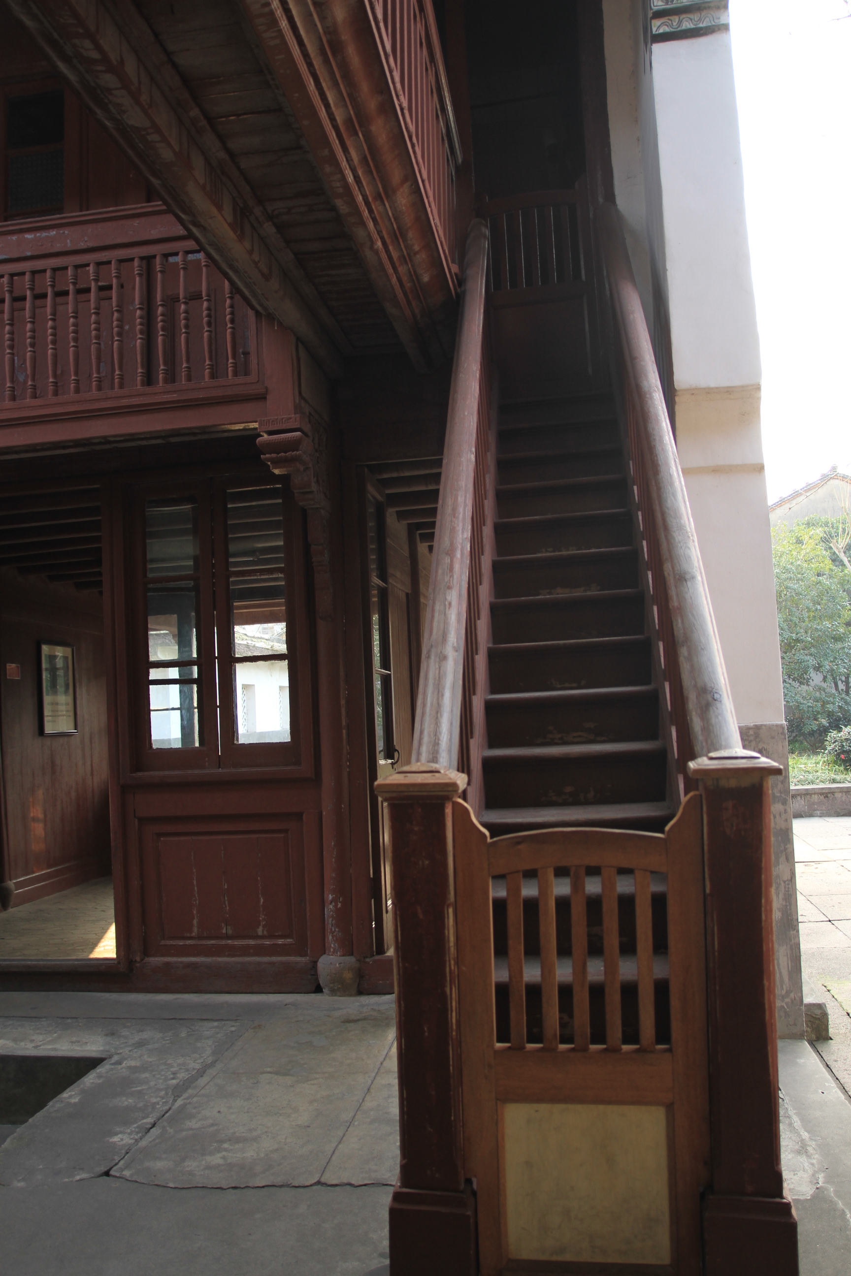 ☞▸武嶺門:是進入溪口鎮的必經路,因建在武山的山脊上而得名,讀高中時唱到蔣公紀念歌首句就有「翳惟總統、武嶺蔣公、巍巍蕩蕩、 民無能名…」。當時不識武嶺何意,今問及導遊卻有兩種說法:一說溪口山川地貌與陶淵明筆下的桃花源記相似,武嶺取武陵諧音,意即世外桃源之地。另一說取「武德」之義,蔣在《武嶺樂亭記》解釋「其獨以武嶺名者,殆取義于武德,即其地以況其所居之人耶。」可見誰掌握權力說了就算數,抬頭望見城門正面鐫刻「武嶺」,是出自黨國大老于右任書法墨寶,。進入武嶺城門,見煙霞古鎮,三里長街傍依剡溪蜿蜒而築,仿若世外桃源,果有幾分陶淵明筆下「武陵」的景象,這裡就是蔣氏父子從小生活的地方。☞@文昌閣:是溪口鎮上風景最優美的地方,居武山南端,剡溪之濱。原初建于清雍正九年(1731),因閣內供奉首奎星(文昌帝君),名為「奎閣」,素有「奎閣凌霄」之稱,是清代溪口十景之一。1924年清明節蔣回鄉掃墓,見其年久失修,出資拆除重建,次年完工後修建成了一座畫梁雕棟、飛檐翹角的兩層樓閣式建築,蔣取名為「樂亭」,並且立《武嶺樂亭記》碑文來描述當下美景。1927年12月,蔣介石和宋美齡結婚後,每到溪口常在此小住,成了他們的私人別墅,二樓是蔣、宋的臥室和起居室。西安事變後張學良將軍被送到溪口軟禁,最先的落腳點在此,後才移送到雪竇山。1939年12月,六架日軍侵華戰機轟炸溪口,文昌閣被夷為平地,現在的建築是1987年按原樣重建,並被大陸列入全國重點文物保護單位。