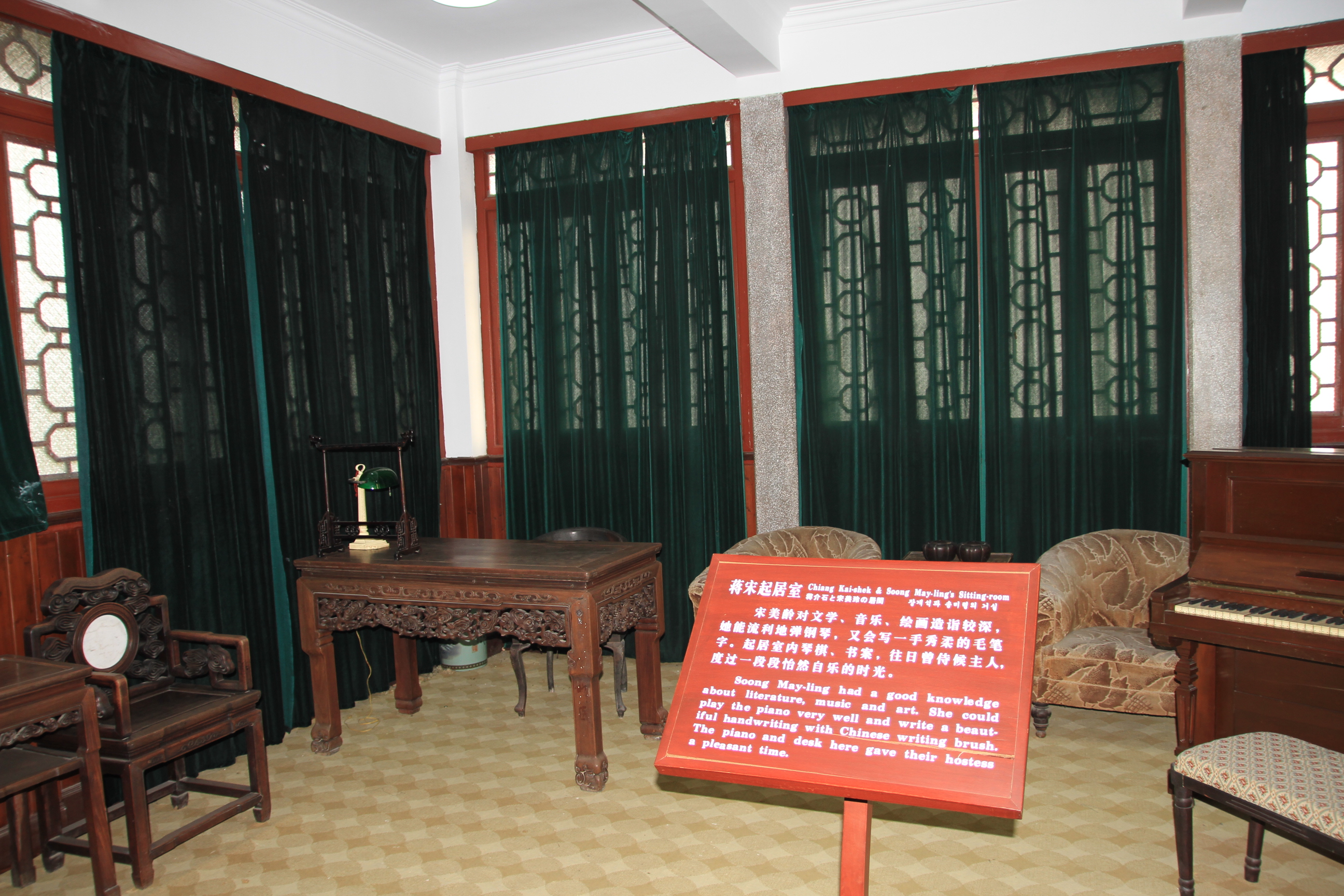 ☞▶豐鎬房:豐鎬房取名是因西周初曾建都的豐邑和鎬京,自此以豐鎬做為自家的房號,希望自己的家族也能象西周一樣興旺發達。走進豐鎬房,建築格局為前廳後堂、兩廂四廊,是傳統的世家府第格局,獨缺東南角一塊,無法成就方正風水格局,據導遊說:這家釘子戶是蔣的幼年同學,不願出讓寶地,穿鑿附會說成敗走東南臺灣的因素,似乎有些牽強。豐鎬房前廳及左右還有三個花園,兩邊廂房各由宋美齡親手栽種的金銀桂花各一株,東廂房留給宋美齡居住,西廂房為毛福梅住所。西廂房西側有幢獨立小樓,原是祖傳的三間房屋,是蔣母王采玉舊居。為尊重宗法保留風水,豐鎬房擴建時高度不能超出這幢祖居的屋基;「素居」,是蔣家吃素念經的地方。進入後堂即見報本堂,有三塊掛匾楹聯值得觀看:一是「寓理帥氣」的題字和跋文,是蔣在經國四十歲生日時所題,意思是只有以理服眾,才能恢弘大氣統帥萬物。二是門口望柱上的楹聯,也由蔣所寫:「報本尊親是謂至德要道,光前裕後所望孝子順孫」。三是「報本堂」橫匾,是黨國元老吳敬恒手書,報本堂是豐鎬房整個建築的核心。蔣中正掌軍政大權後,每次回鄉必到豐鎬房「報本堂」參拜祖宗。