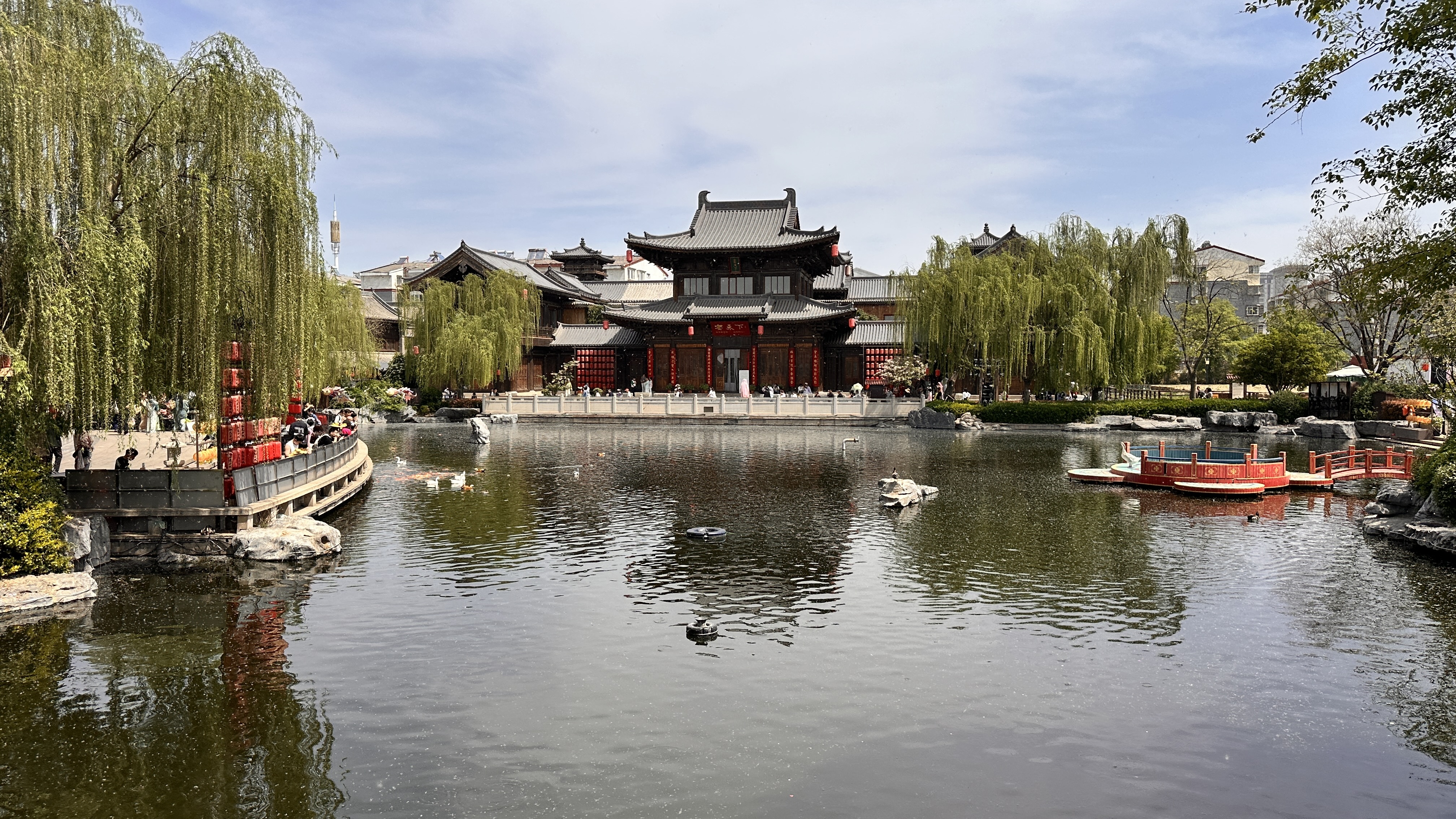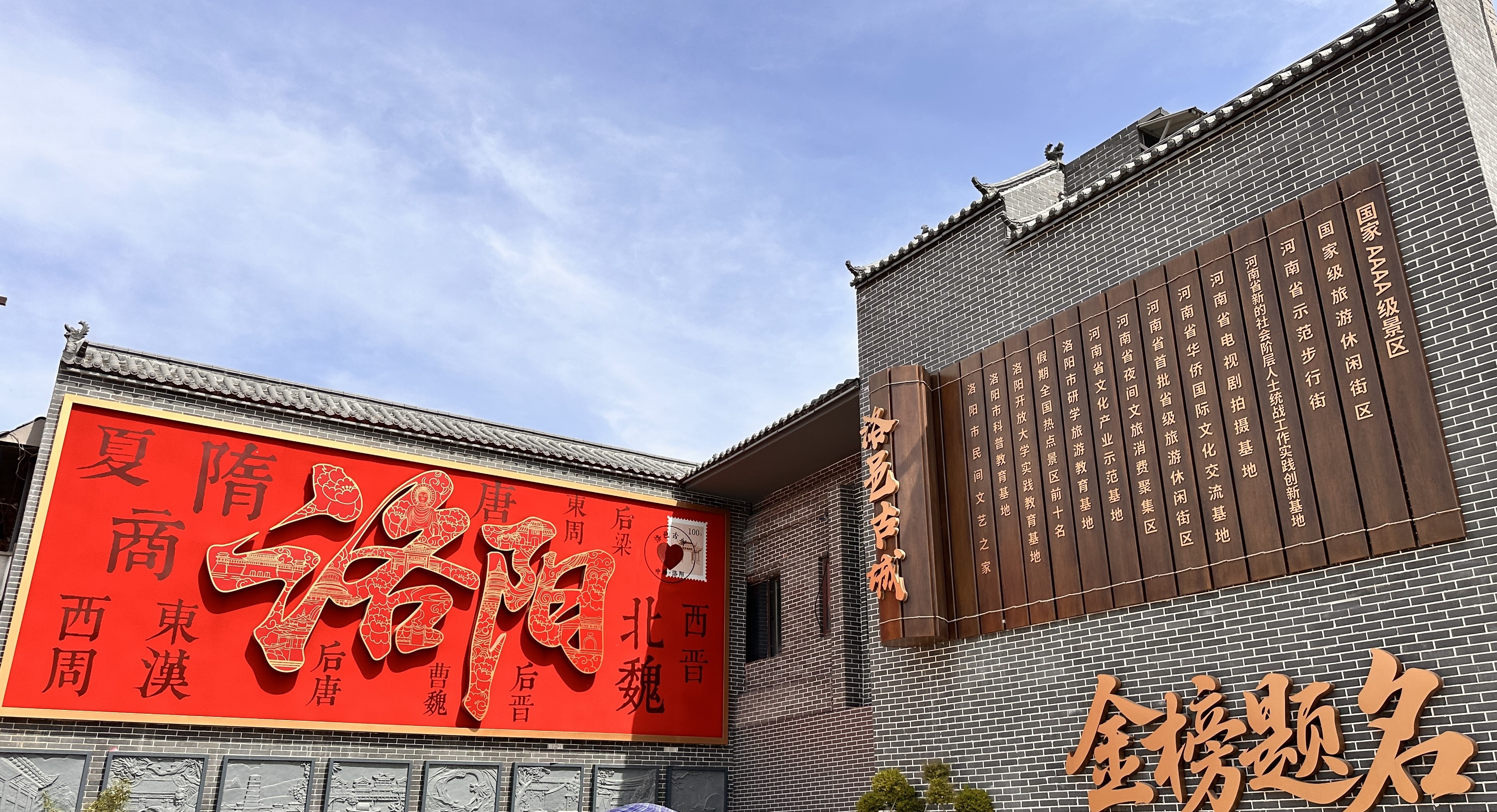 ⇝老城區東南隅緊鄰瀍河,是在隋唐時期「洛邑」舊址上復建的沉浸式文化景區。雖然是仿建唐風建築群,景區如從古裝劇場景裡走出的盛唐街市,一步一景:青瓦白牆、飛簷挑拱、小橋柳絮、燈籠煙巷,街道節點:文峰塔、文昌閣、府衙、四合院等仿古建築,是視覺焦點。